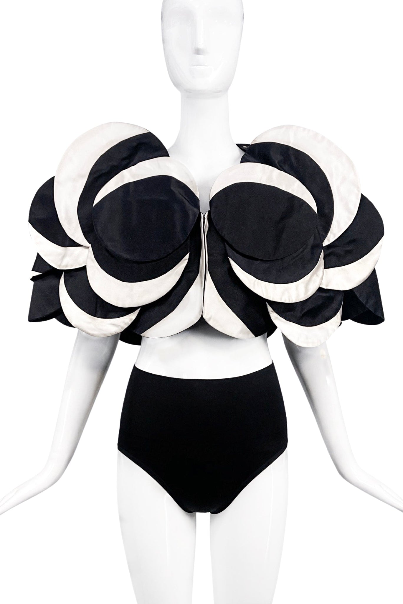 An Roberto Capucci black and white circle origami cropped bolero jacket. From the Roberto Capucci Alta Mode 1987 collection.