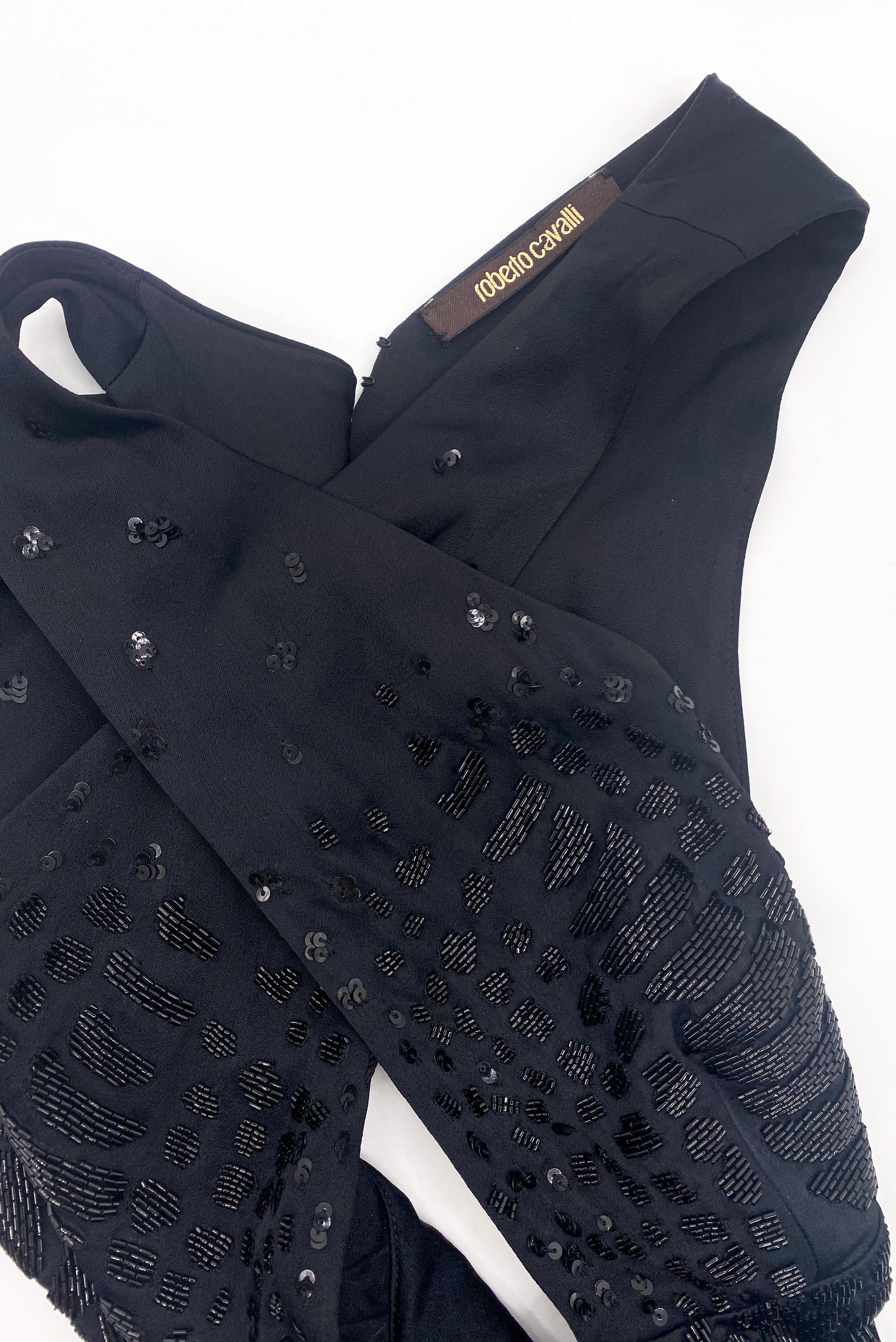 Roberto Cavalli Black Crocodile Glass Bead and Sequin Cocktail Dress