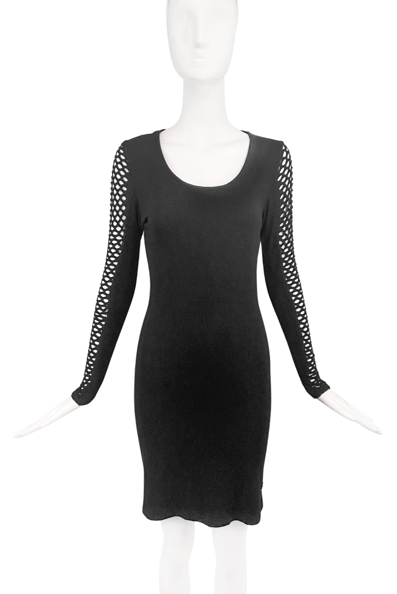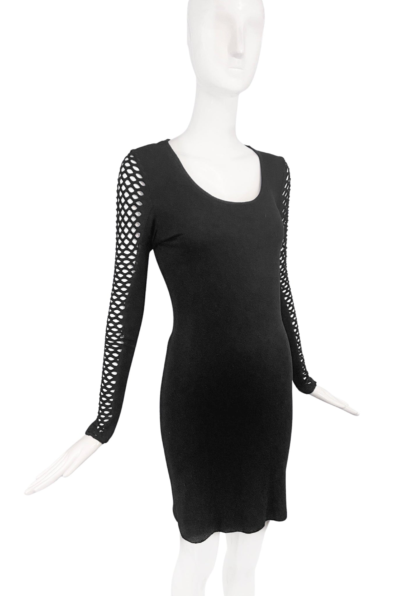Roberto Cavalli Black Fishnet Sleeve Body Con Stretch Dress