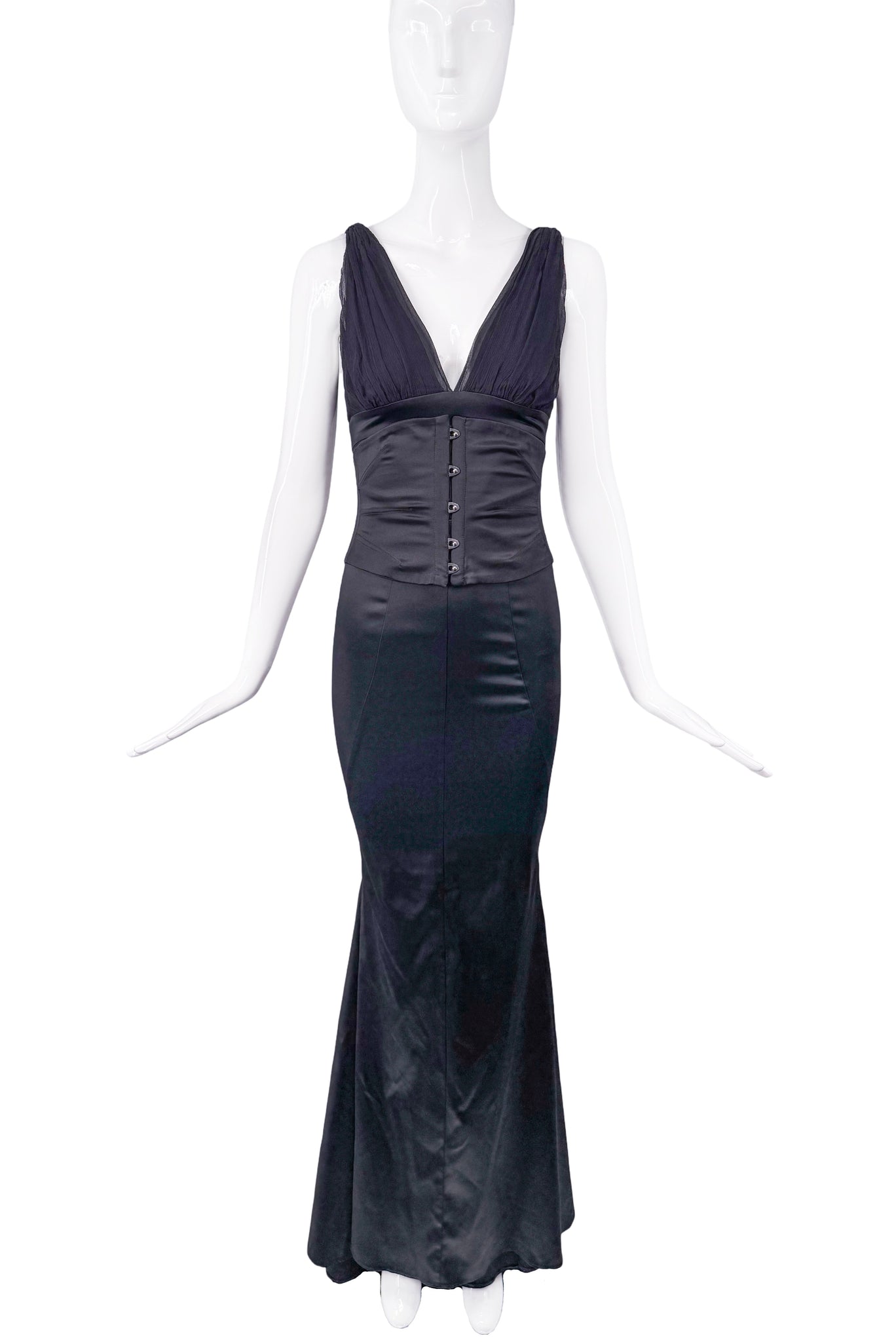 Roberto Cavalli Just Cavalli Black Silk Stretch Chiffon Dress Mermaid Gown