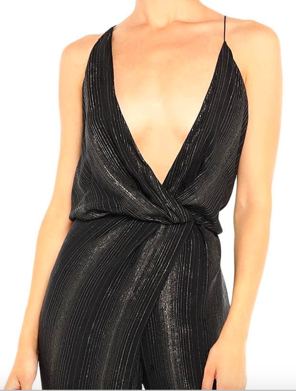 Saint Laurent Anthony Vaccarello Black Gold Lurex Asymmetric Jumpsuit