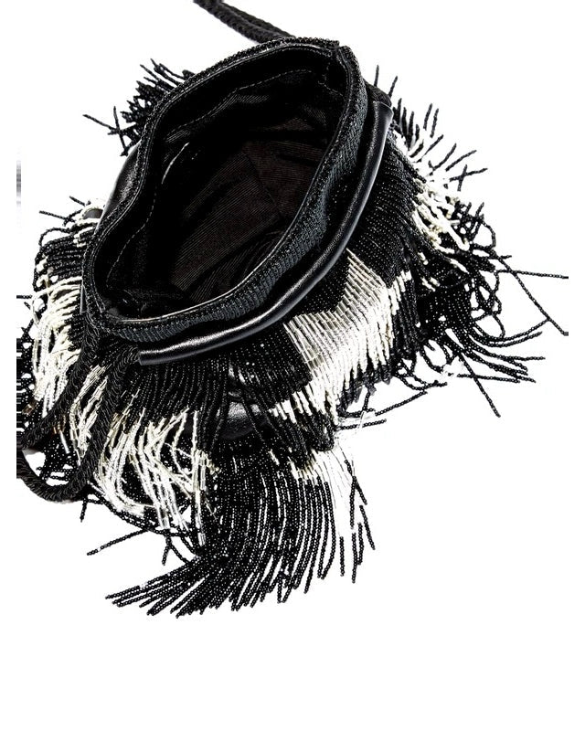 Saint Laurent Paris Black and Silver Beaded Fringe Star Bag