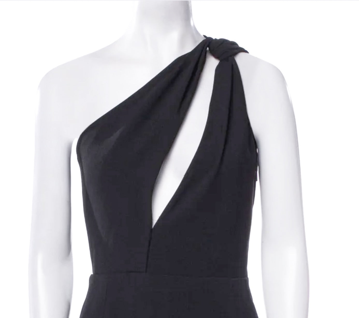 Saint Laurent Black One Shoulder Asymmetric Cut Out Gown Dress Spring 2019