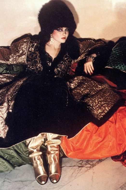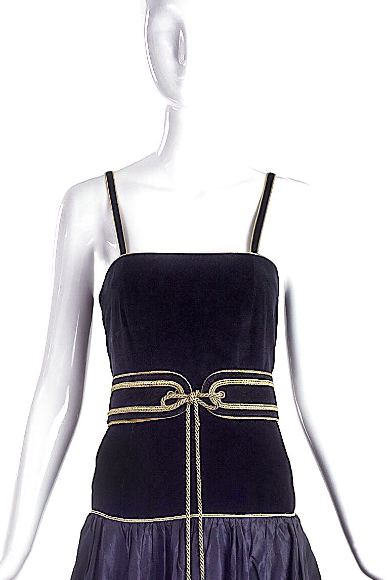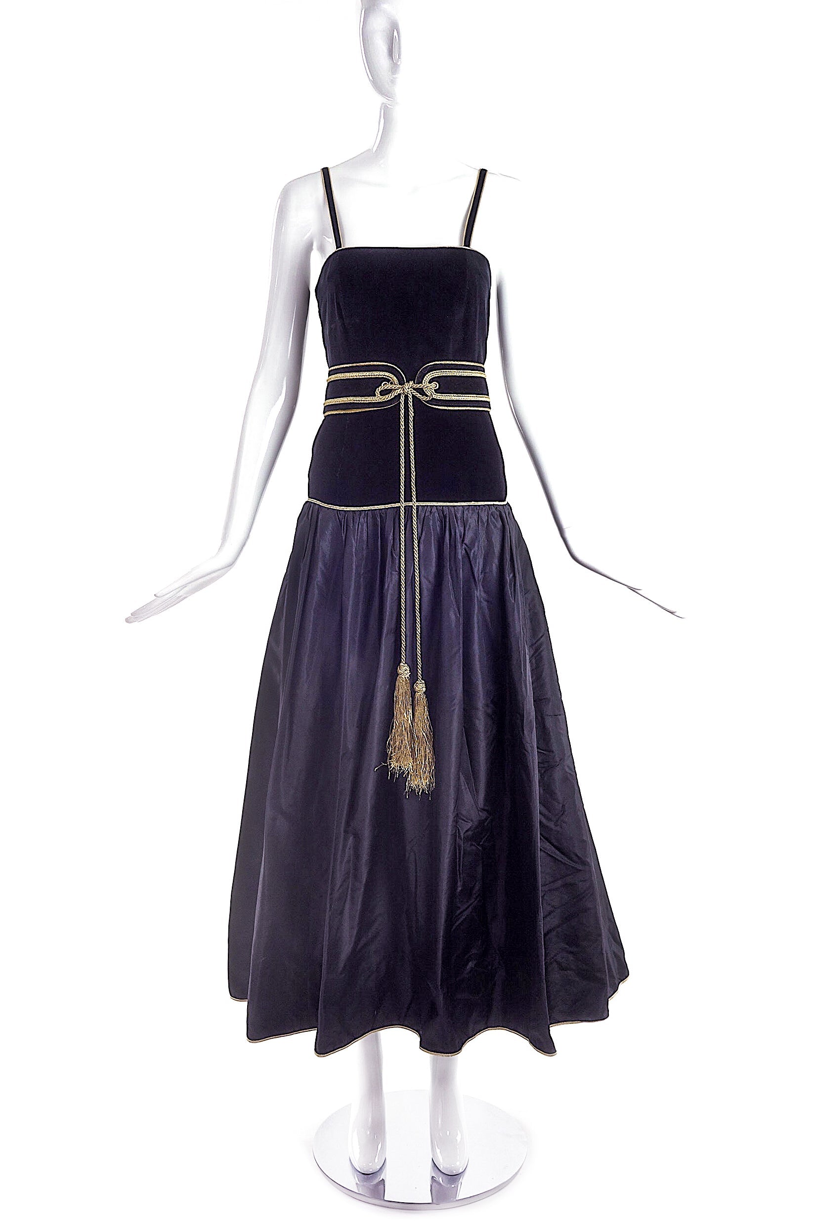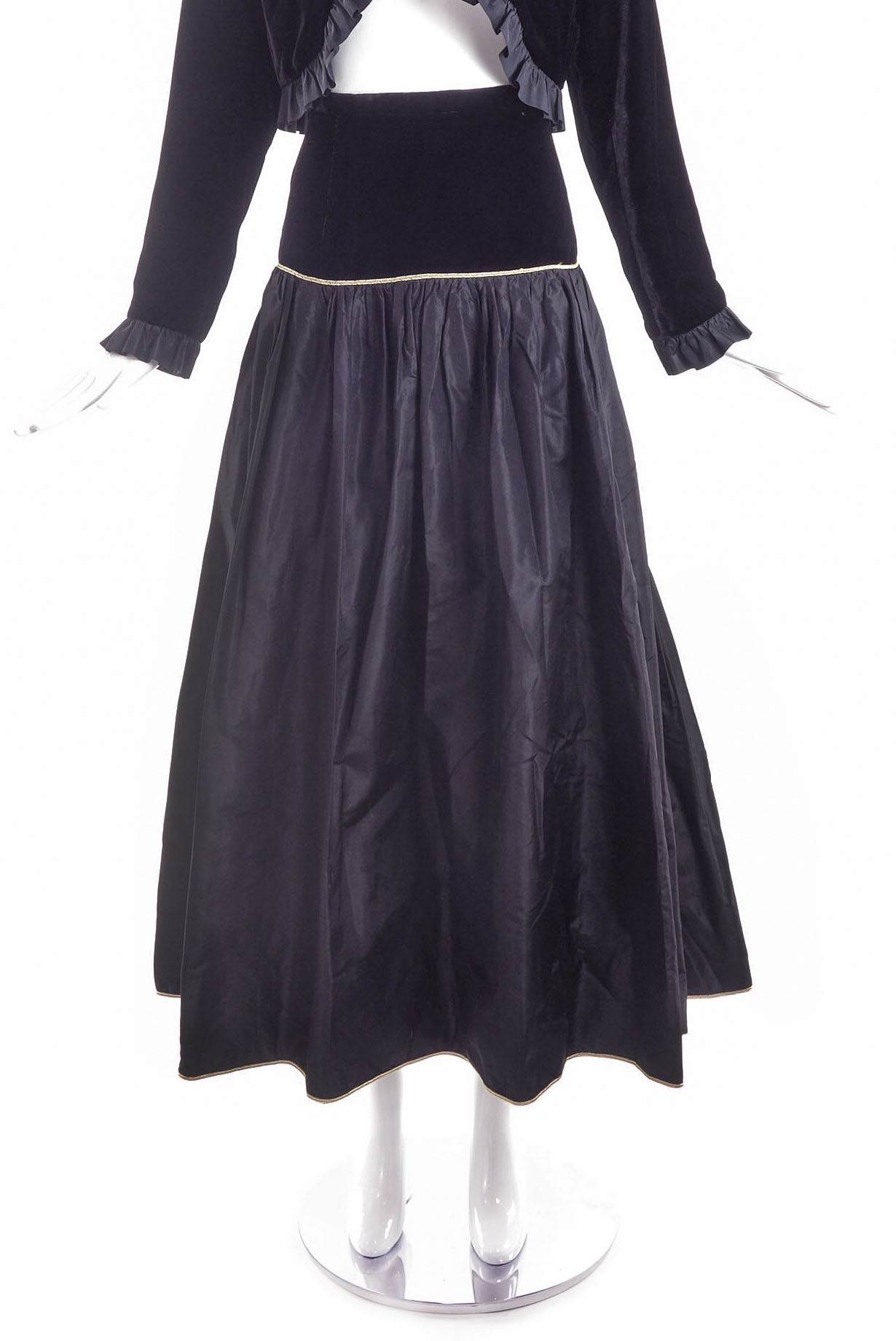 A Yves Saint Laurent black taffeta full skirt with black velvet waist and gold trim from the iconic 1976 Yves Saint Laurent Russian collection.