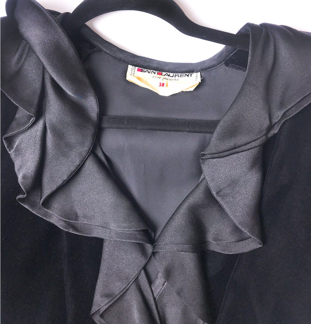 Saint Laurent Black Velvet "Catherine Deneuve" Dress with Silk Ruffle Neck - BOUTIQUE PURCHASE PRICE