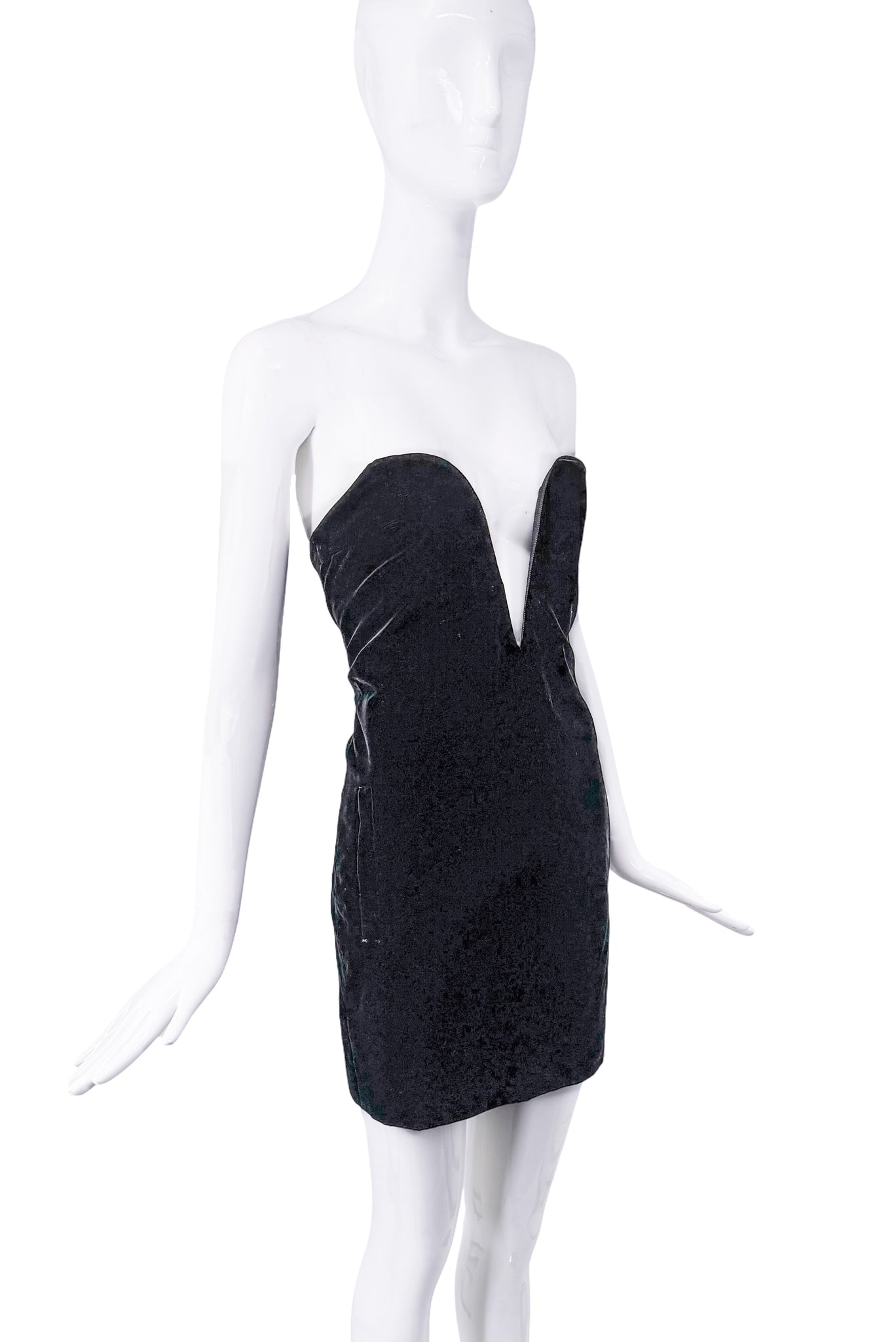 Saint Laurent Black Velvet Puffy Sleeve Deep V Cut Out Dress