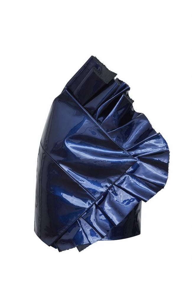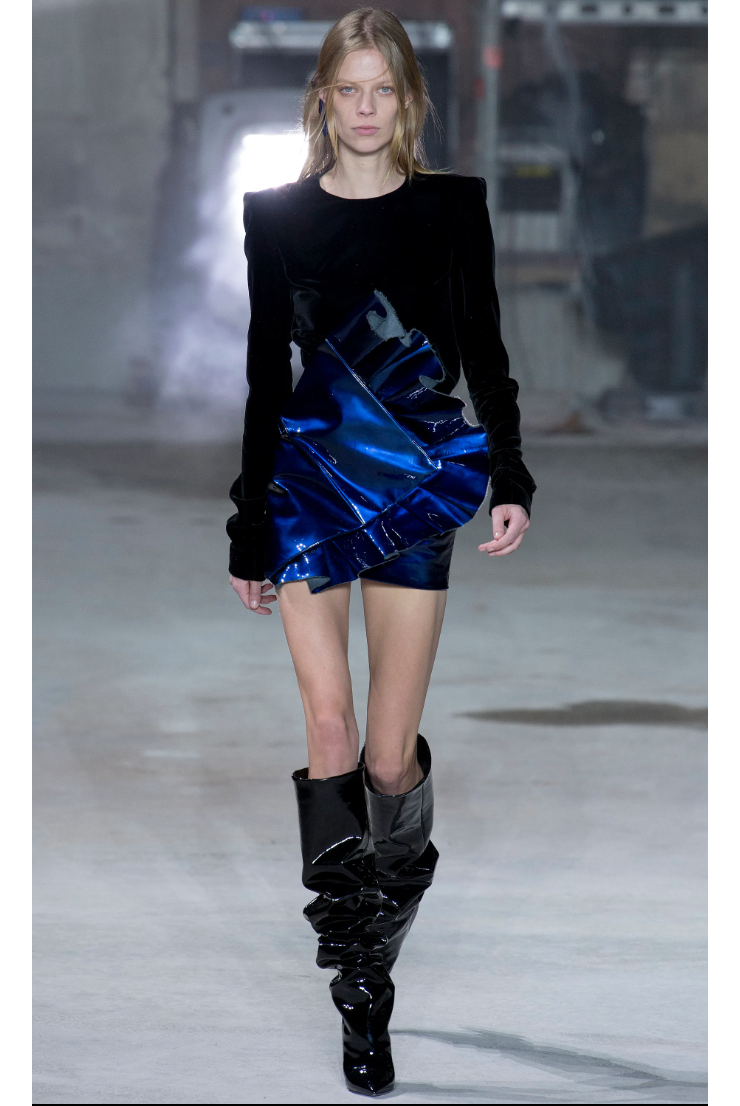 Saint Laurent Blue Patent Leather Ruffle Sci-Fi Couture Skirt Fall 2017 Runway