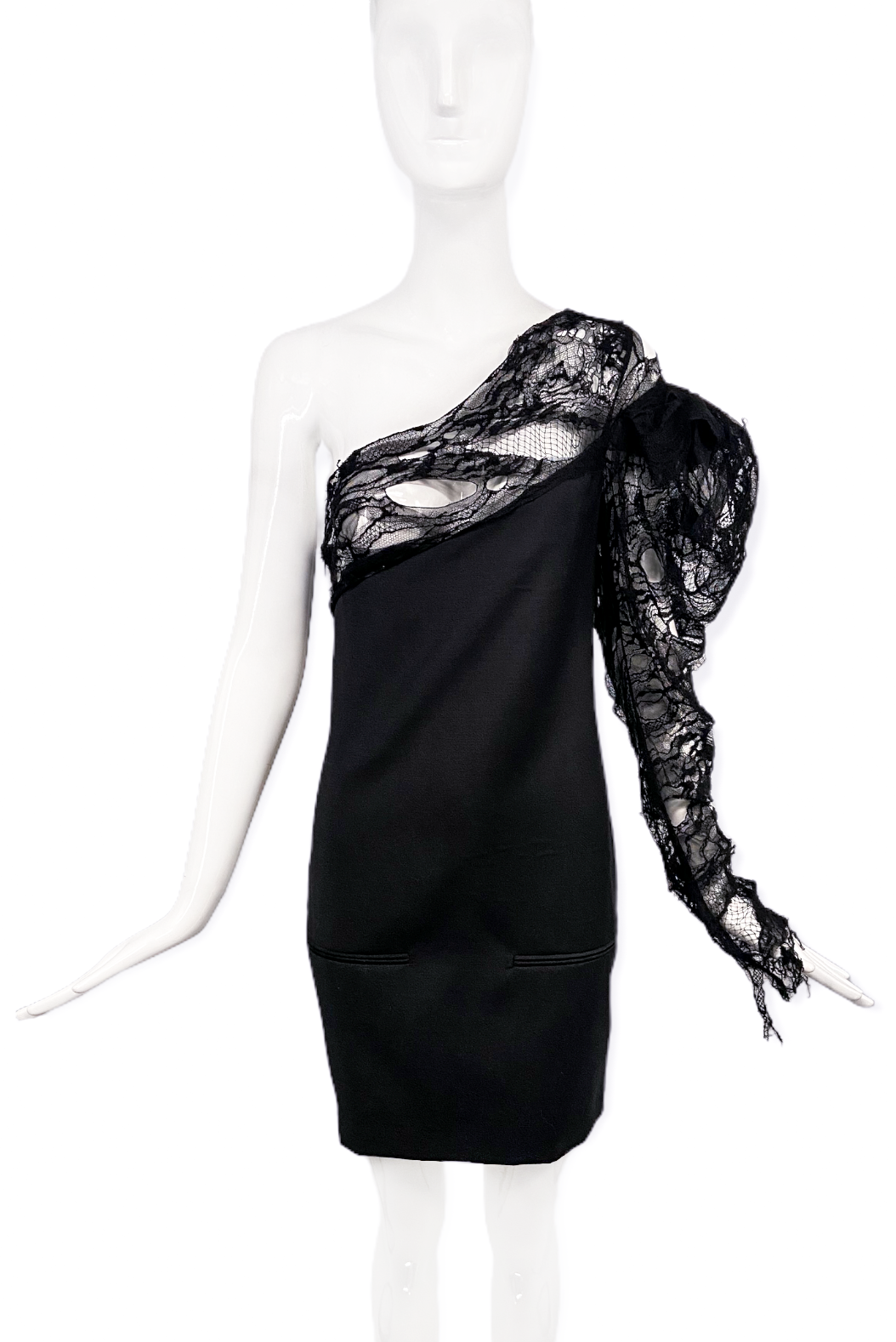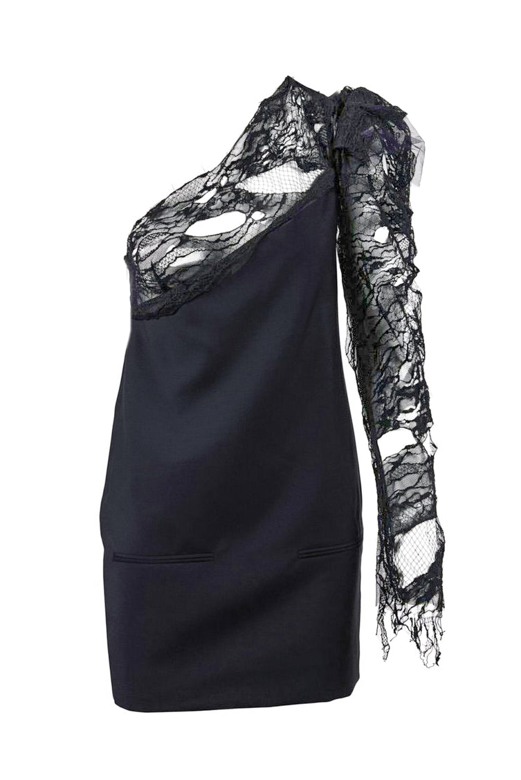 Saint Laurent by Anthony Vaccarello Black Lace One Shoulder Dress SS2017 Runway