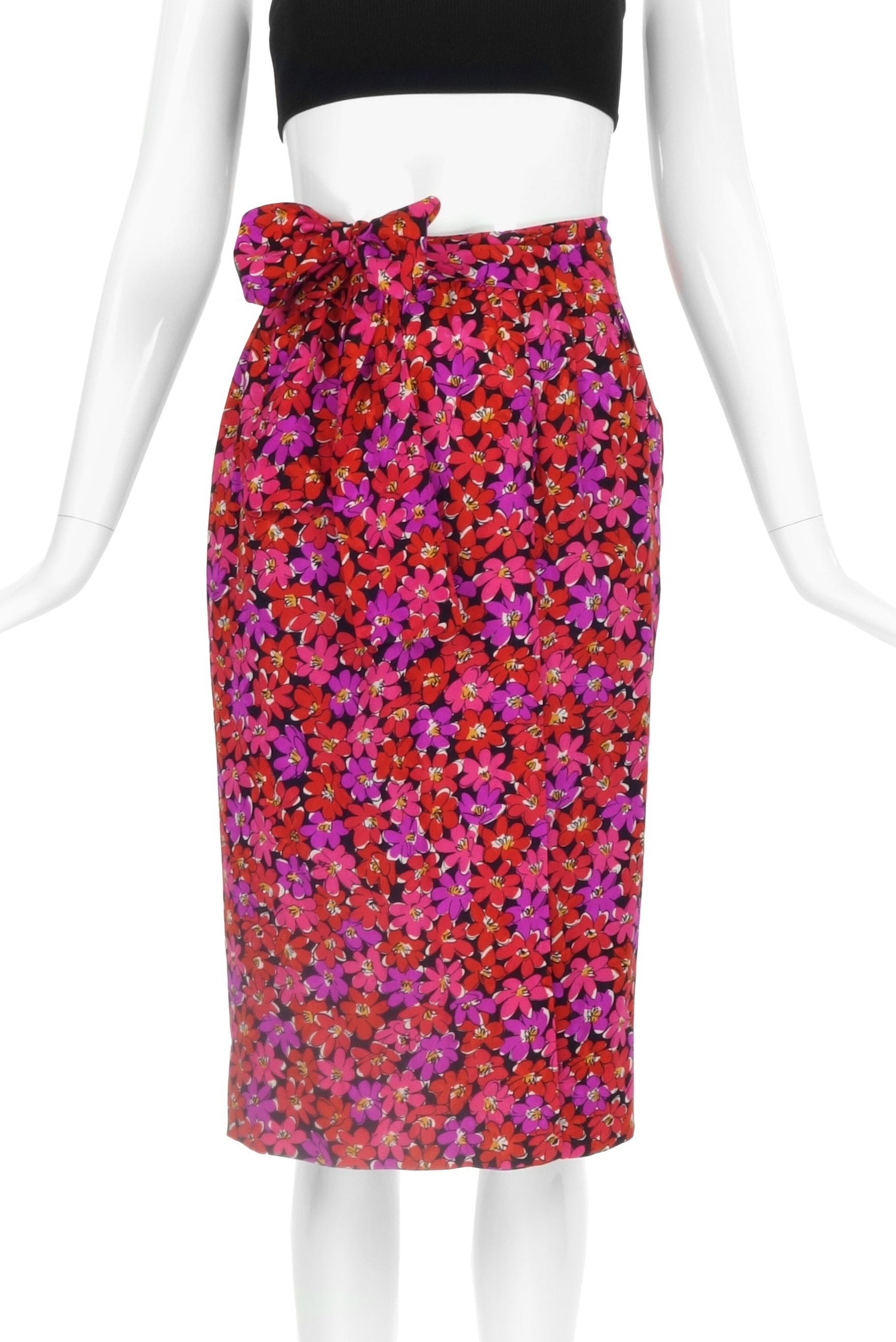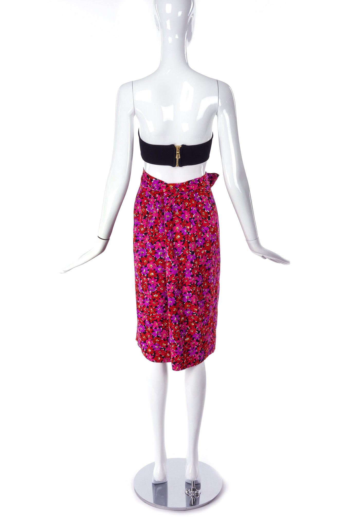 Saint Laurent Rive Gauche Pink and Red Floral Wrap Skirt - BOUTIQUE PURCHASE PRICE