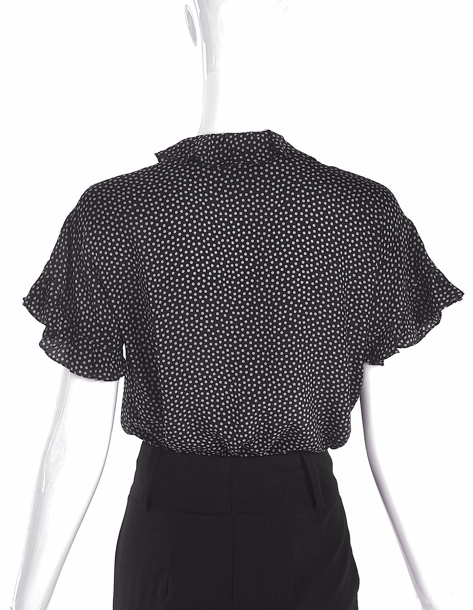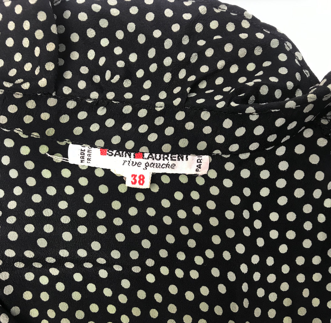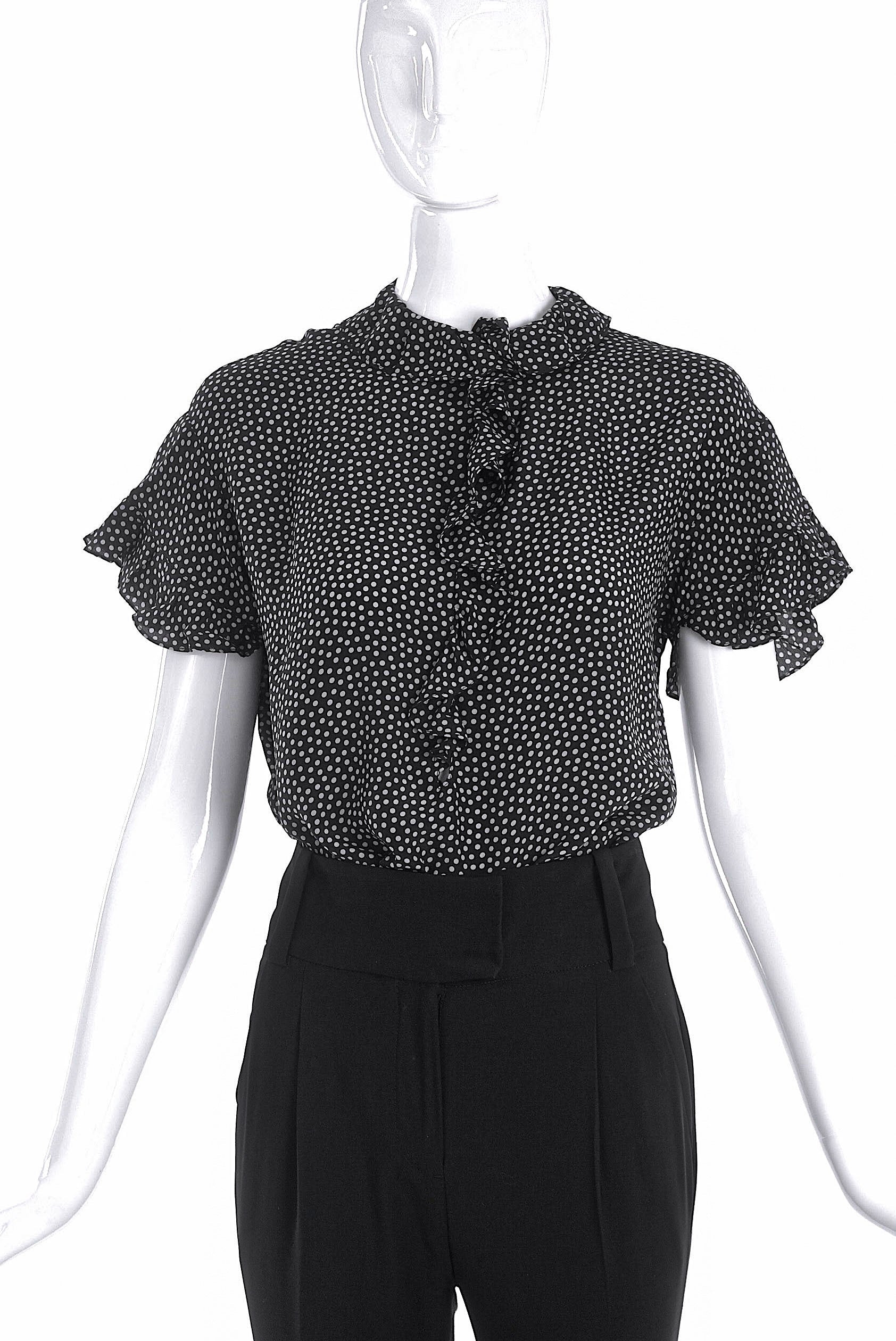 Saint Laurent Rive Gauche Black Polka Dot Ruffle Short Sleeves Blouse - BOUTIQUE PURCHASE PRICE