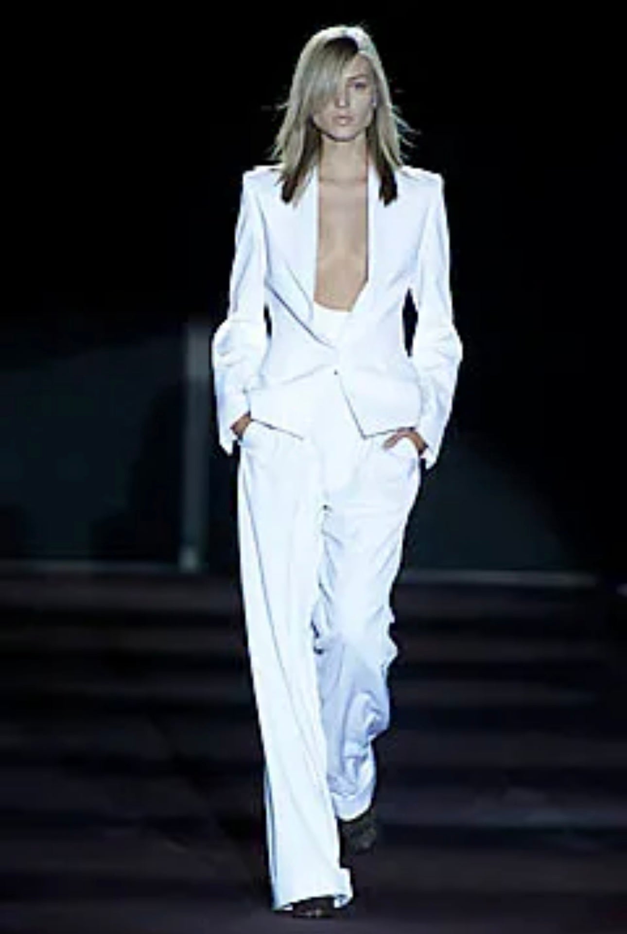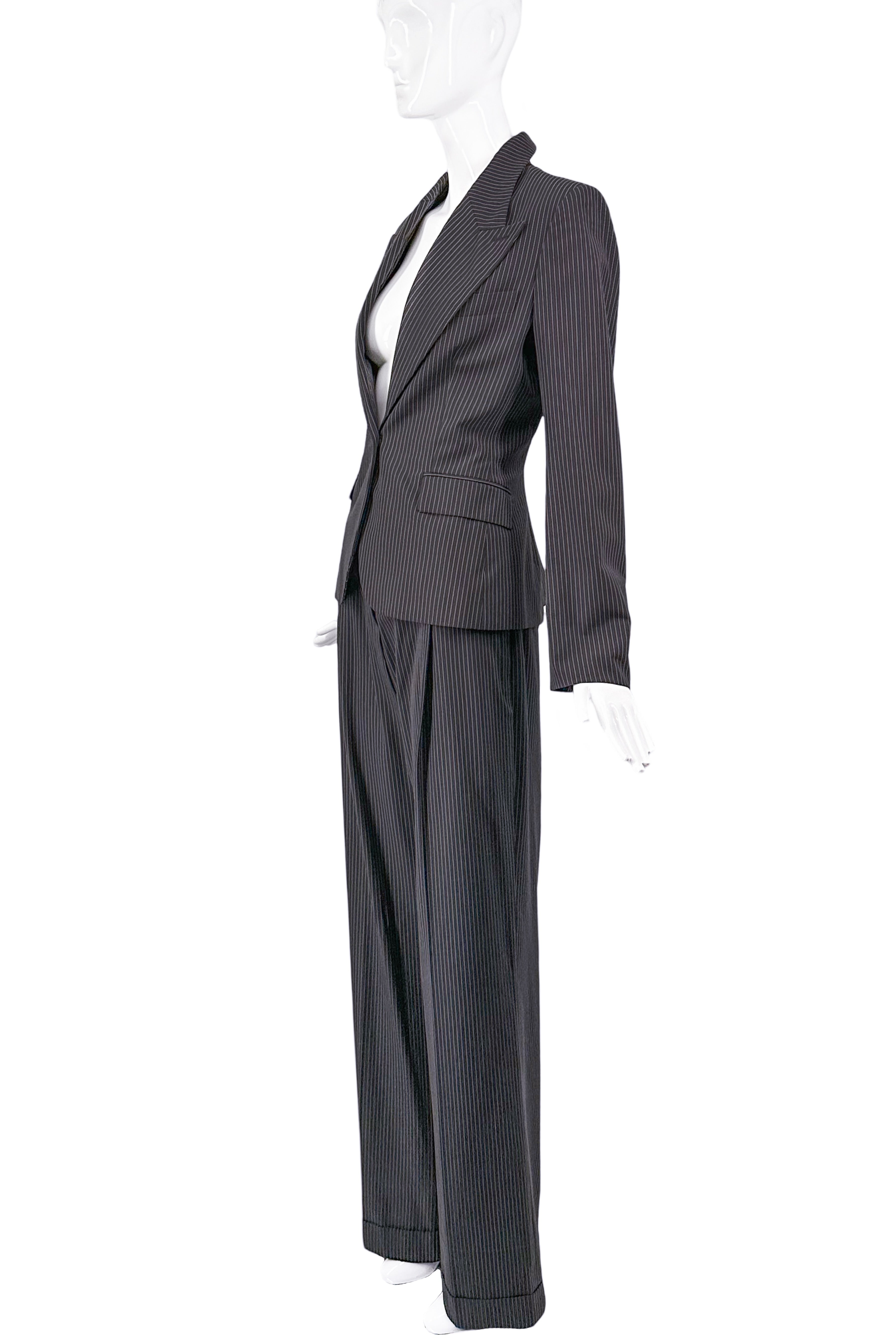 Saint Laurent YSL Tom Ford Black Razor Thin Pin Stripe Single Button Wide Leg Cuff Suit Spring 2001