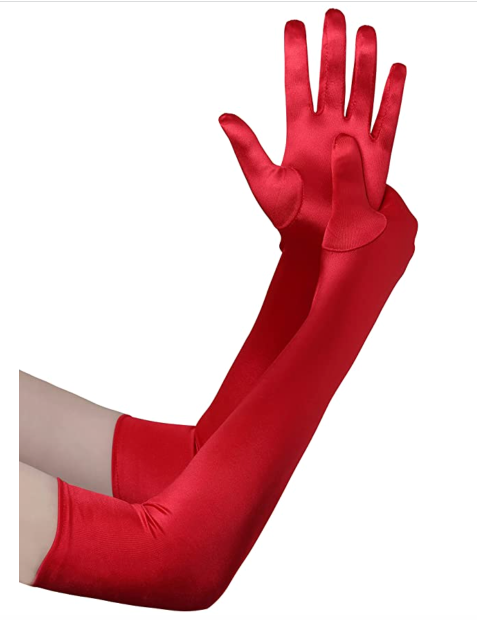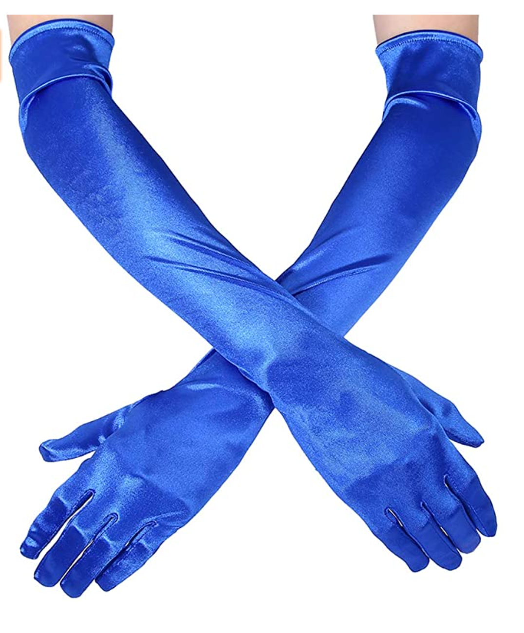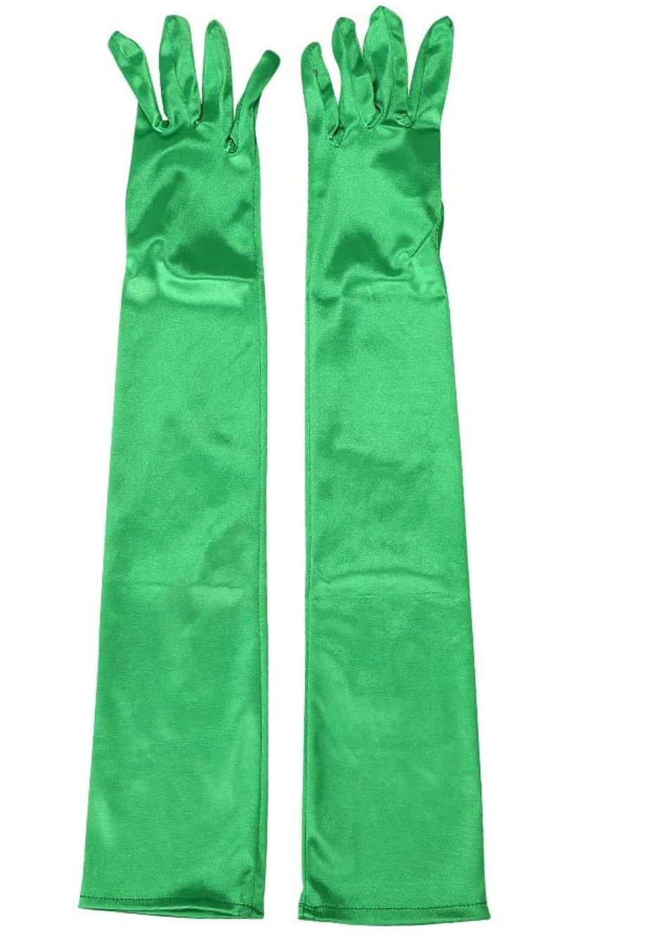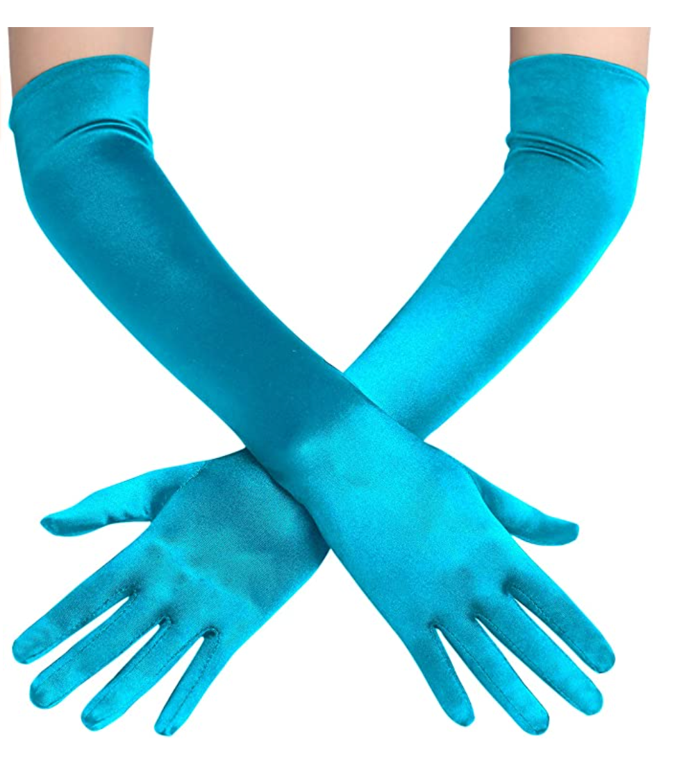 A collection of synthetic satin stretch opera length vibrant color gloves. The collection of gloves are very giving in fit due to the fabric having elastic woven into the fabric. The gloves come in the following colors purple, baby pink, fuchsia, green and cobalt blue. Gloves can be rented separately or together as a collection, please inquire for further information.
