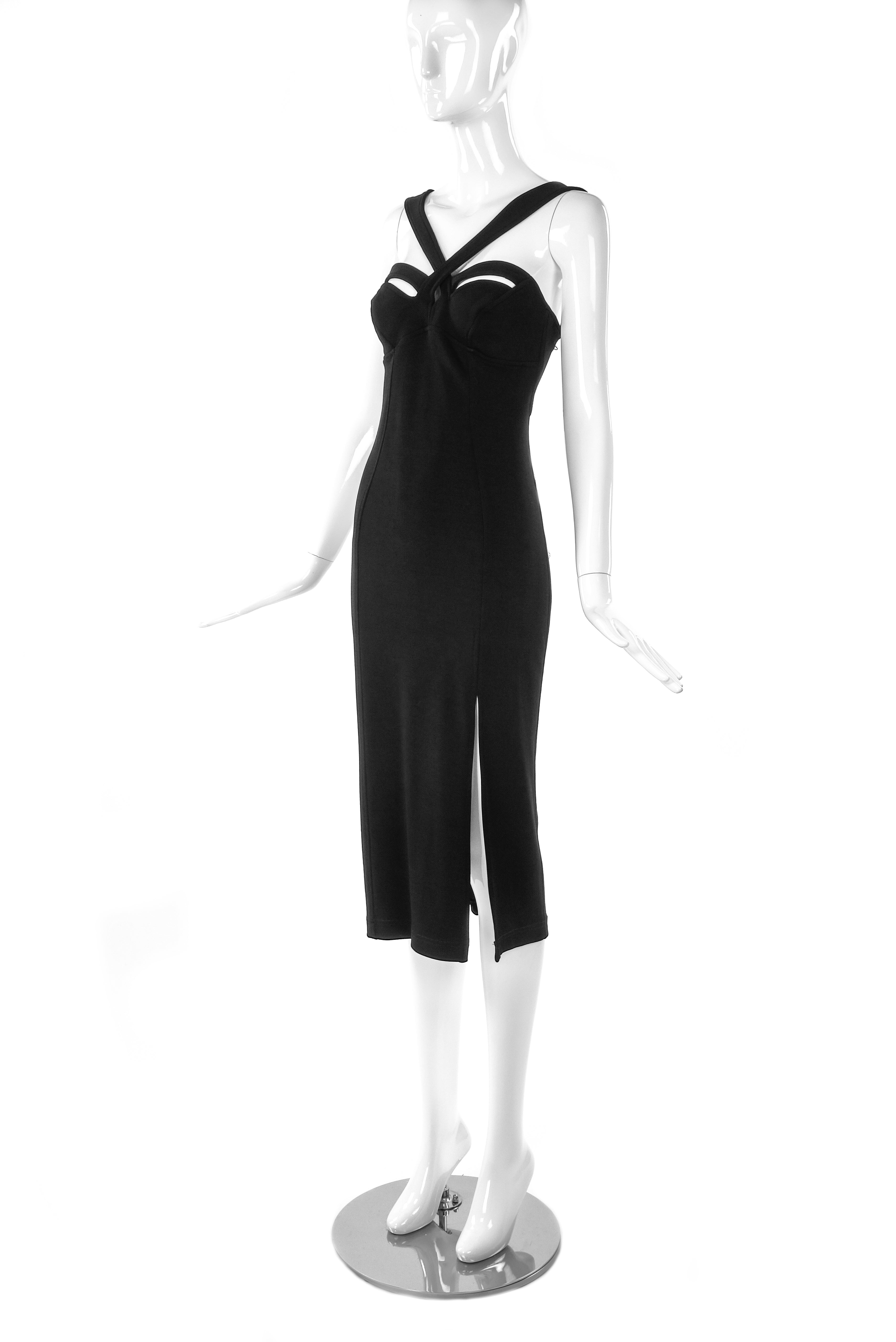 Tadashi Black Sexy Cut Out Cross Bra High Slit "Versace" Style Dress