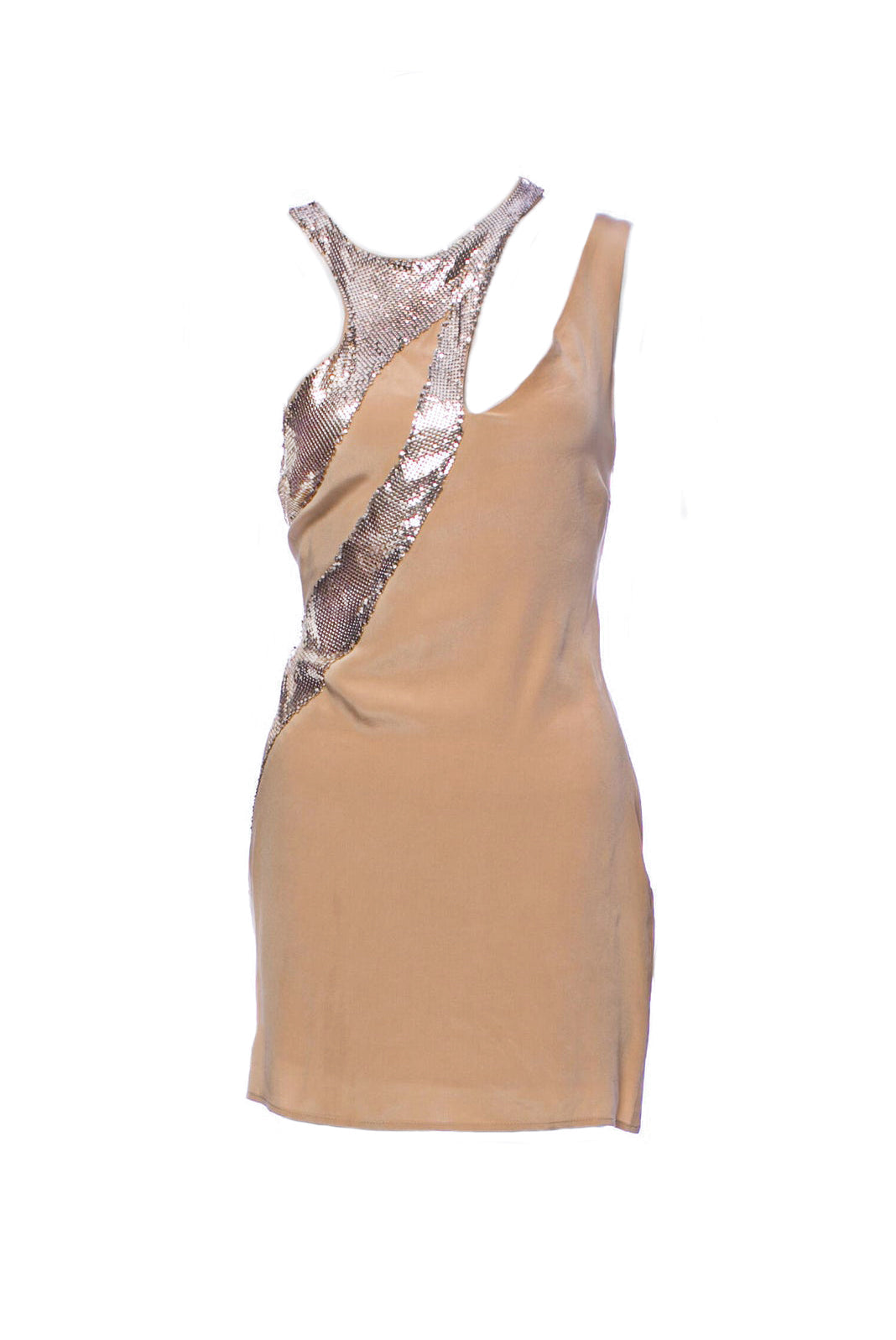 Sherri Bodell Nude Illusion Chainmail Mini Dress