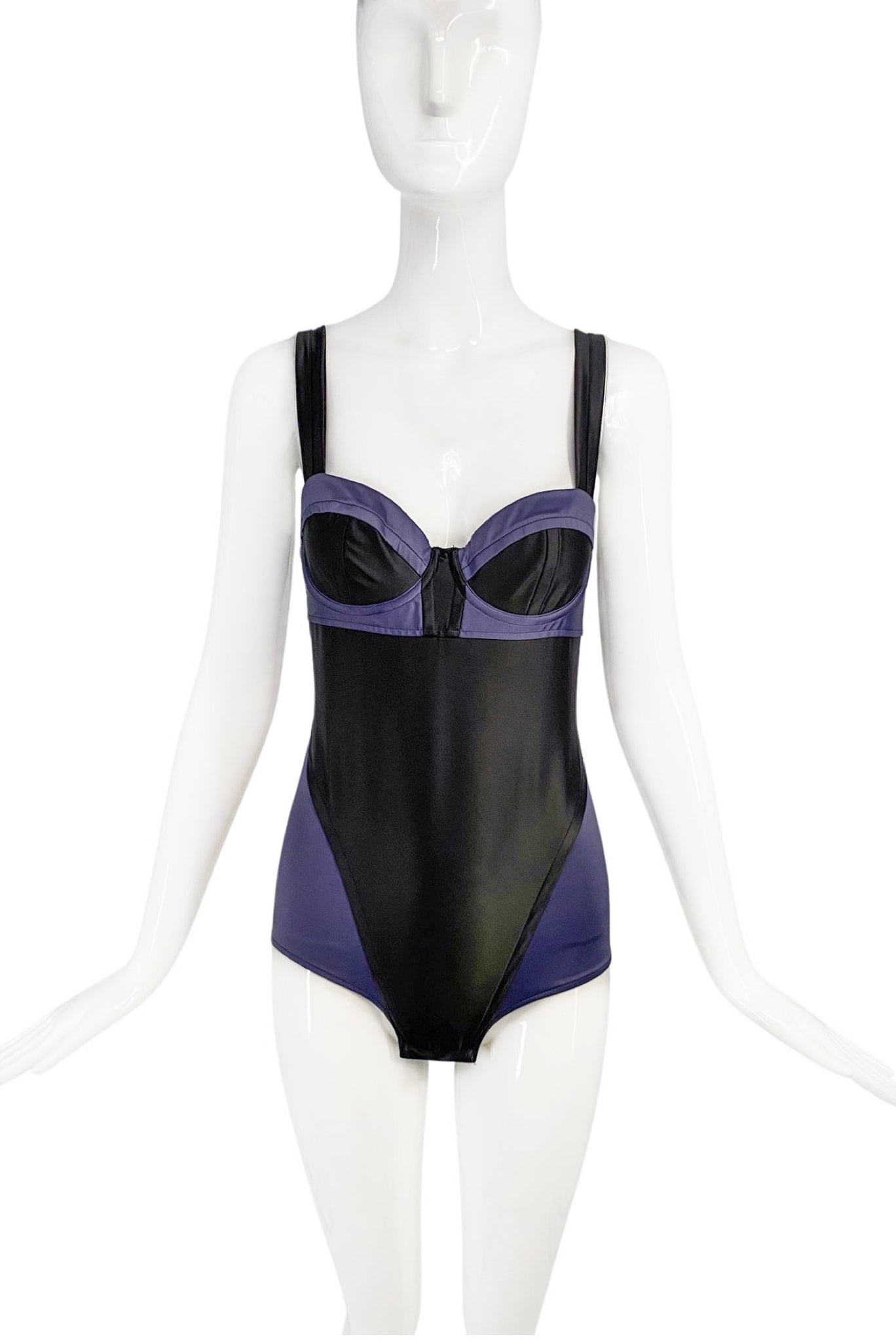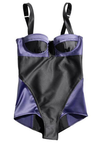 Sonia Rykiel Black Midnight Blue Purple Satin Two Tone Body Suit