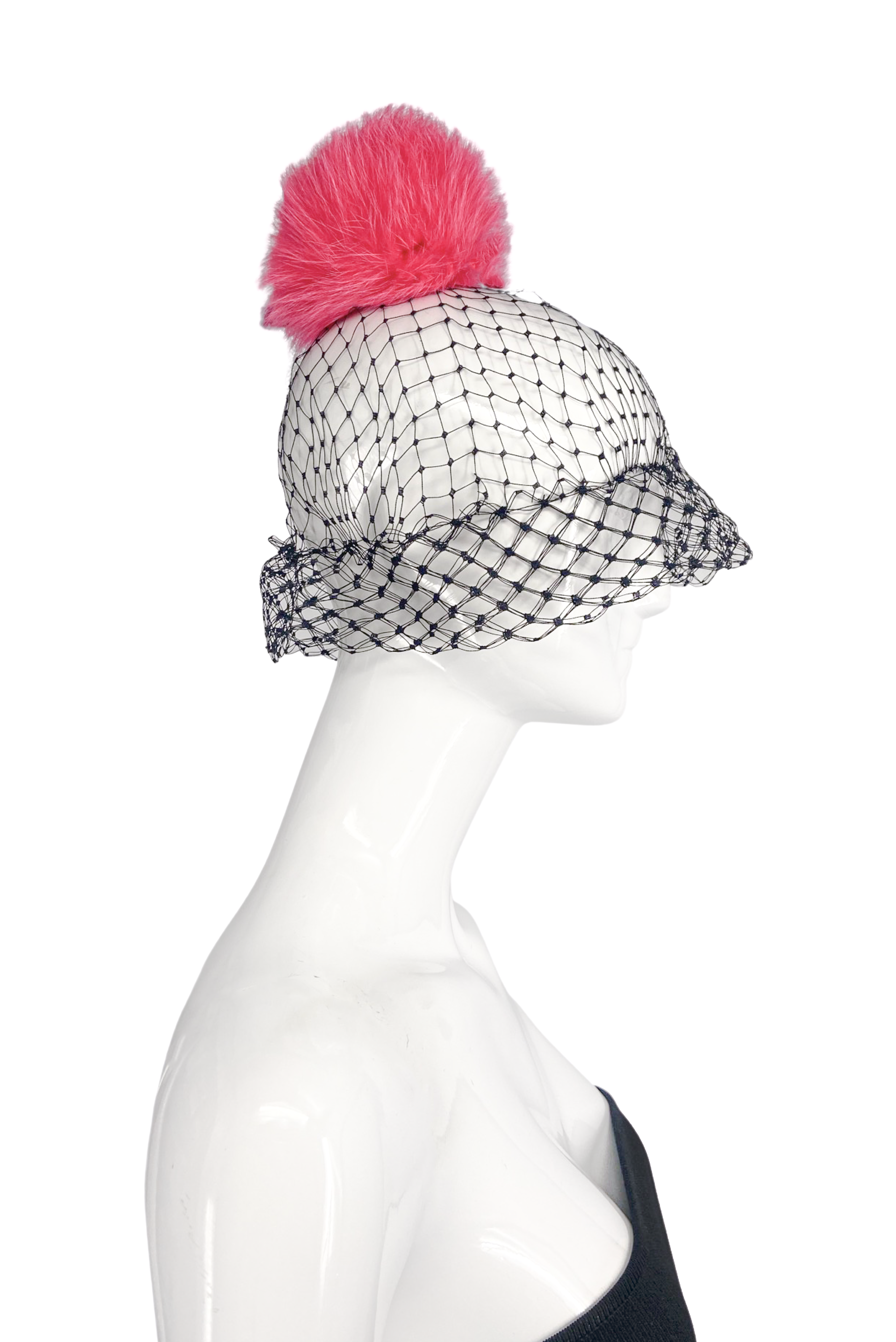 Stephen Jones for Marc Jacobs Fishnet Bucket Hat with Pink Pom Pom