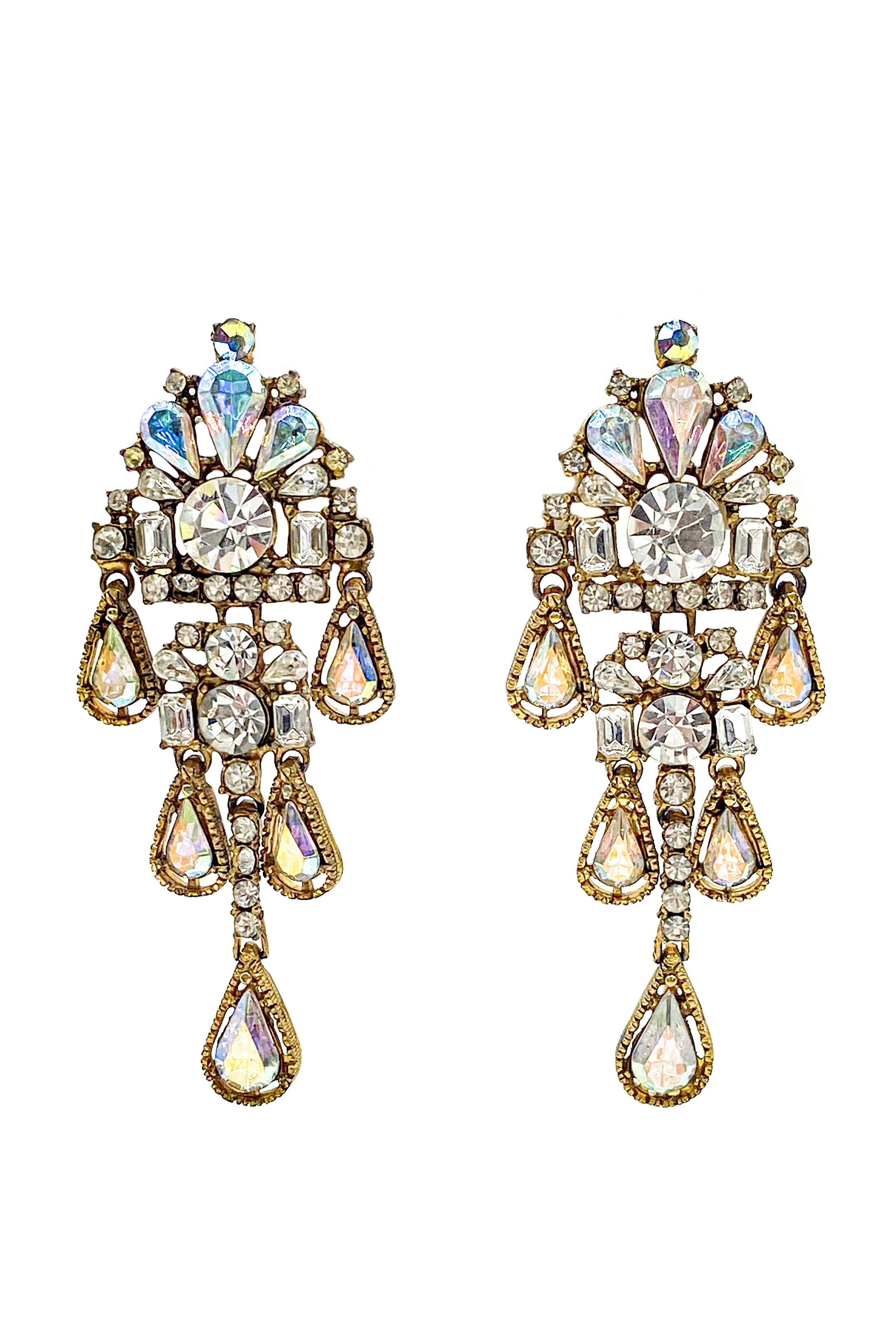 Thelma Deutsch Gold Art Deco Crystal Chandelier Earrings
