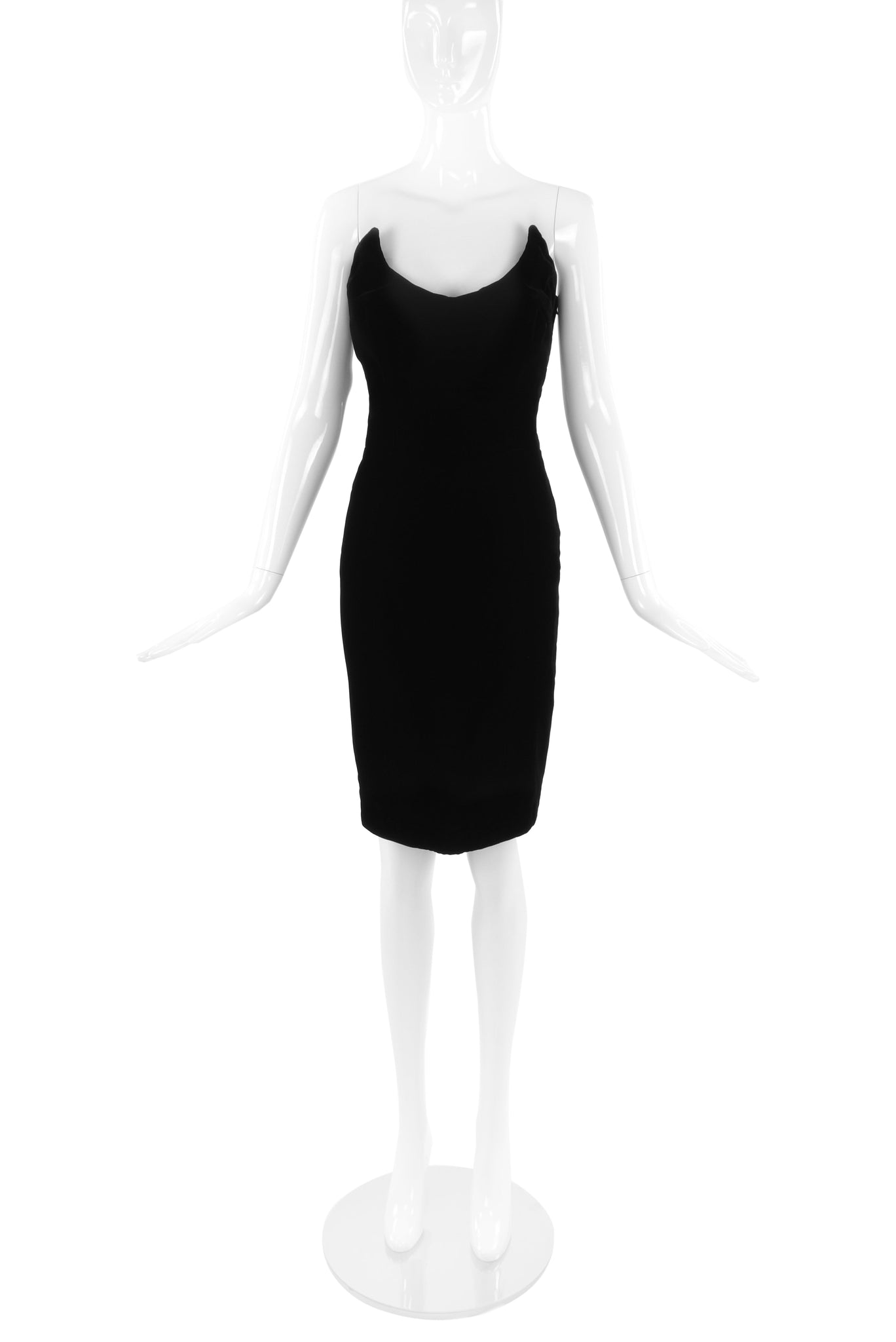 Thierry Mugler Black Velvet Horn Bodice Cocktail Dress