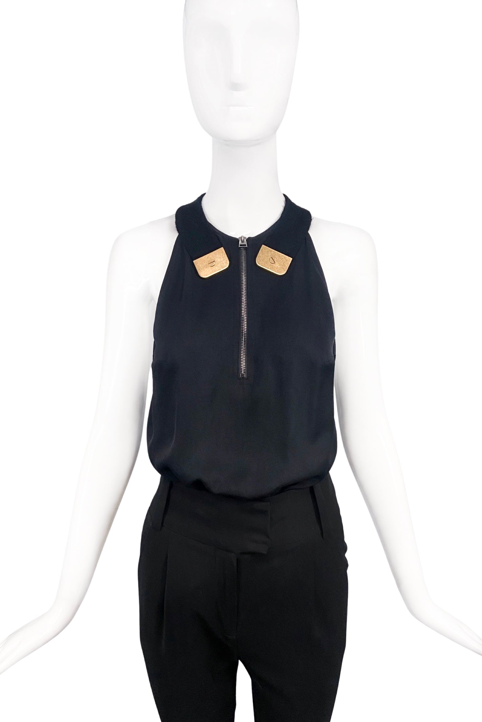 Tom Ford Black Silk Tank Top with Gold Hardware and Zipper Spring 2017