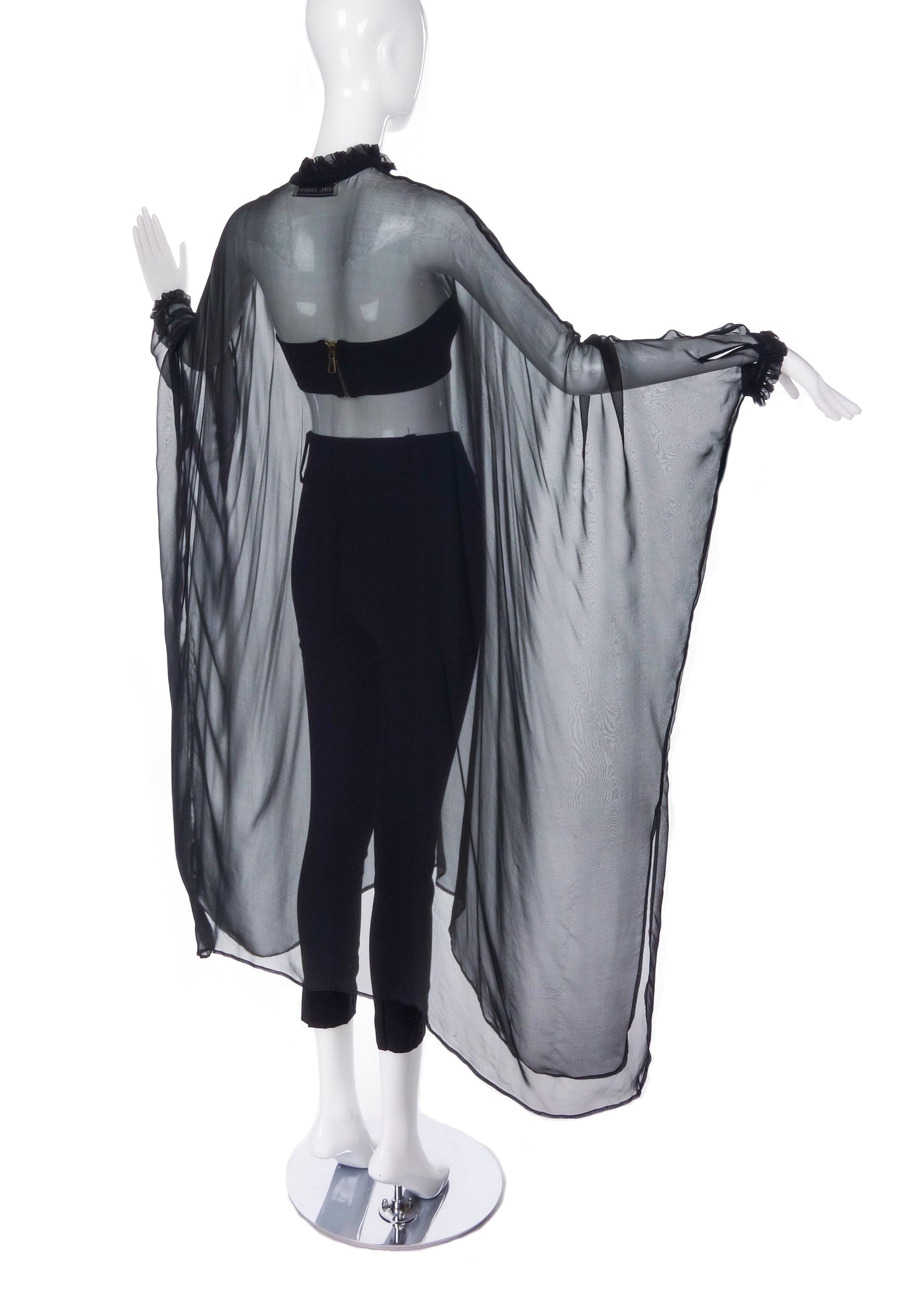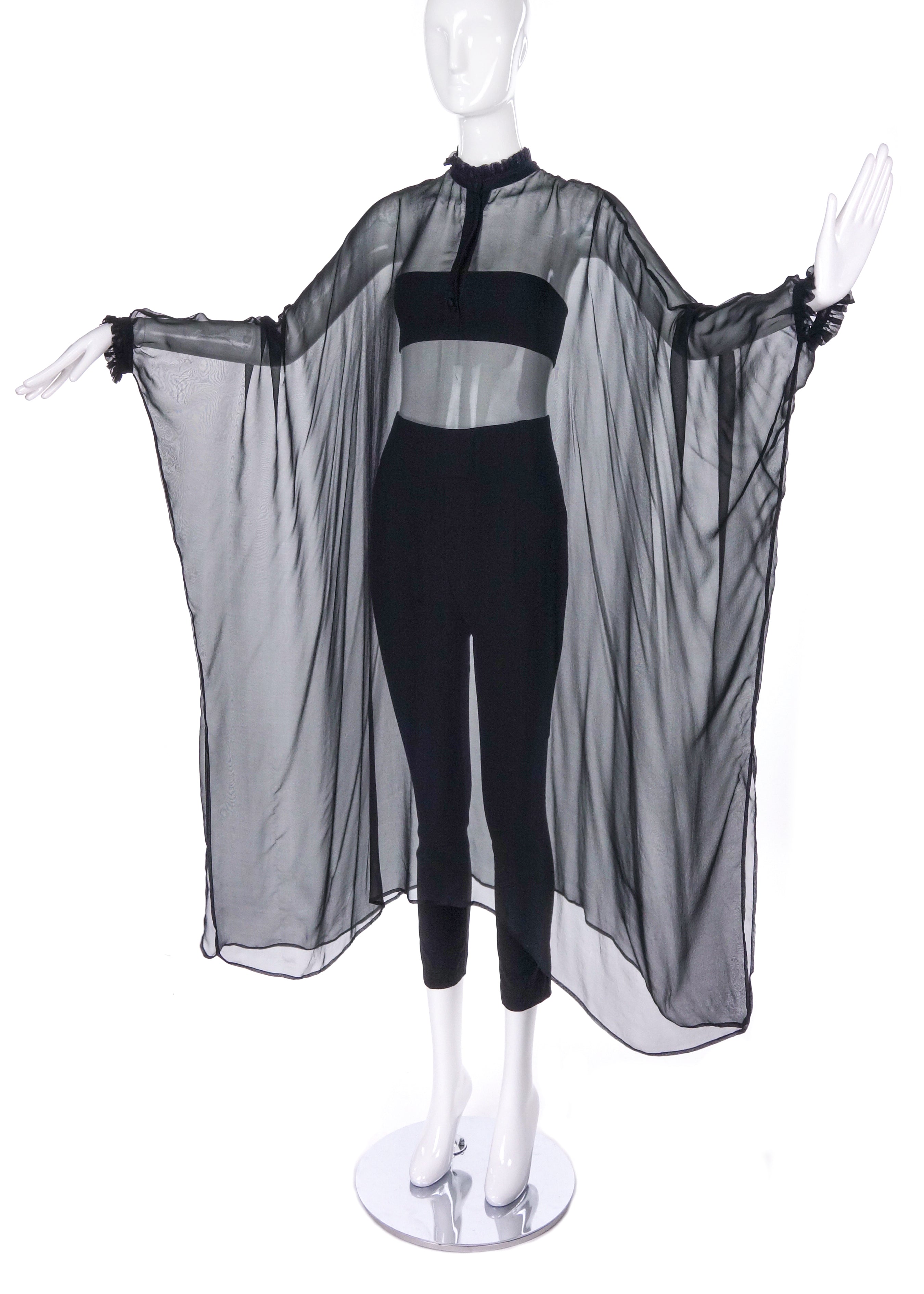 Veronique Branquinho Black Sheer Silk Caftan Kaftan Cape Top