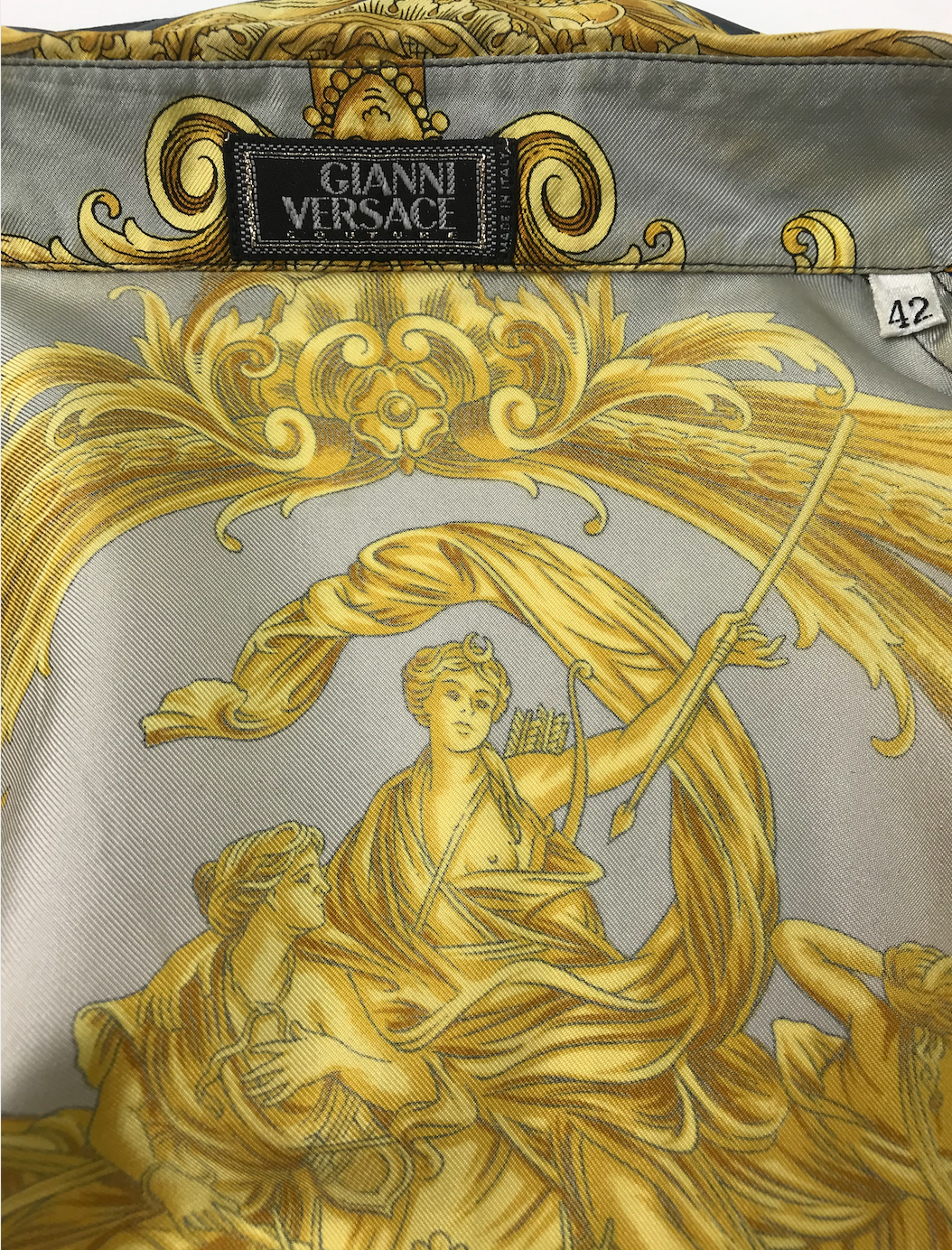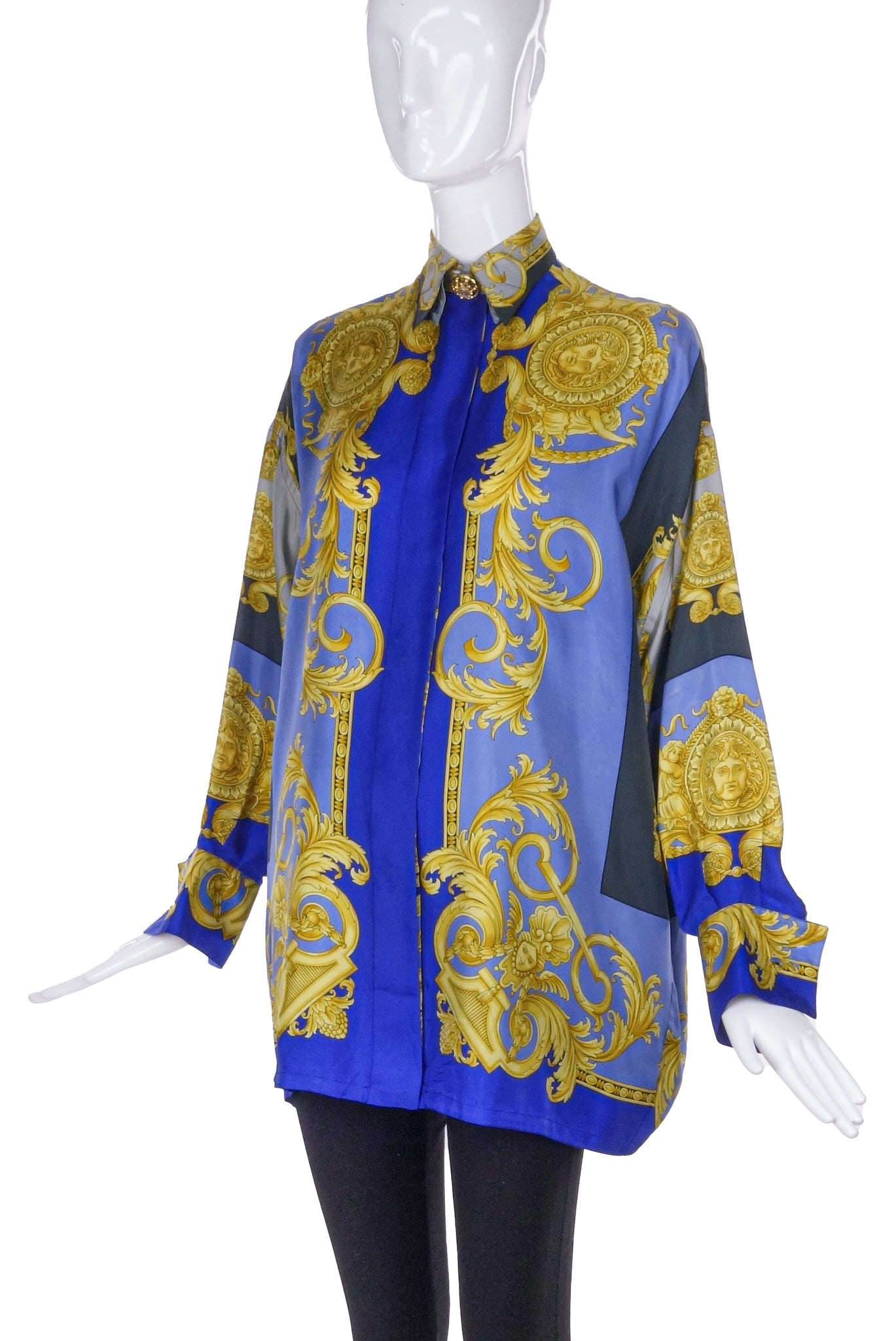 1980's or early 1990's Gianni Versace Couture Silk Blouse with iconic baroque medusa print.