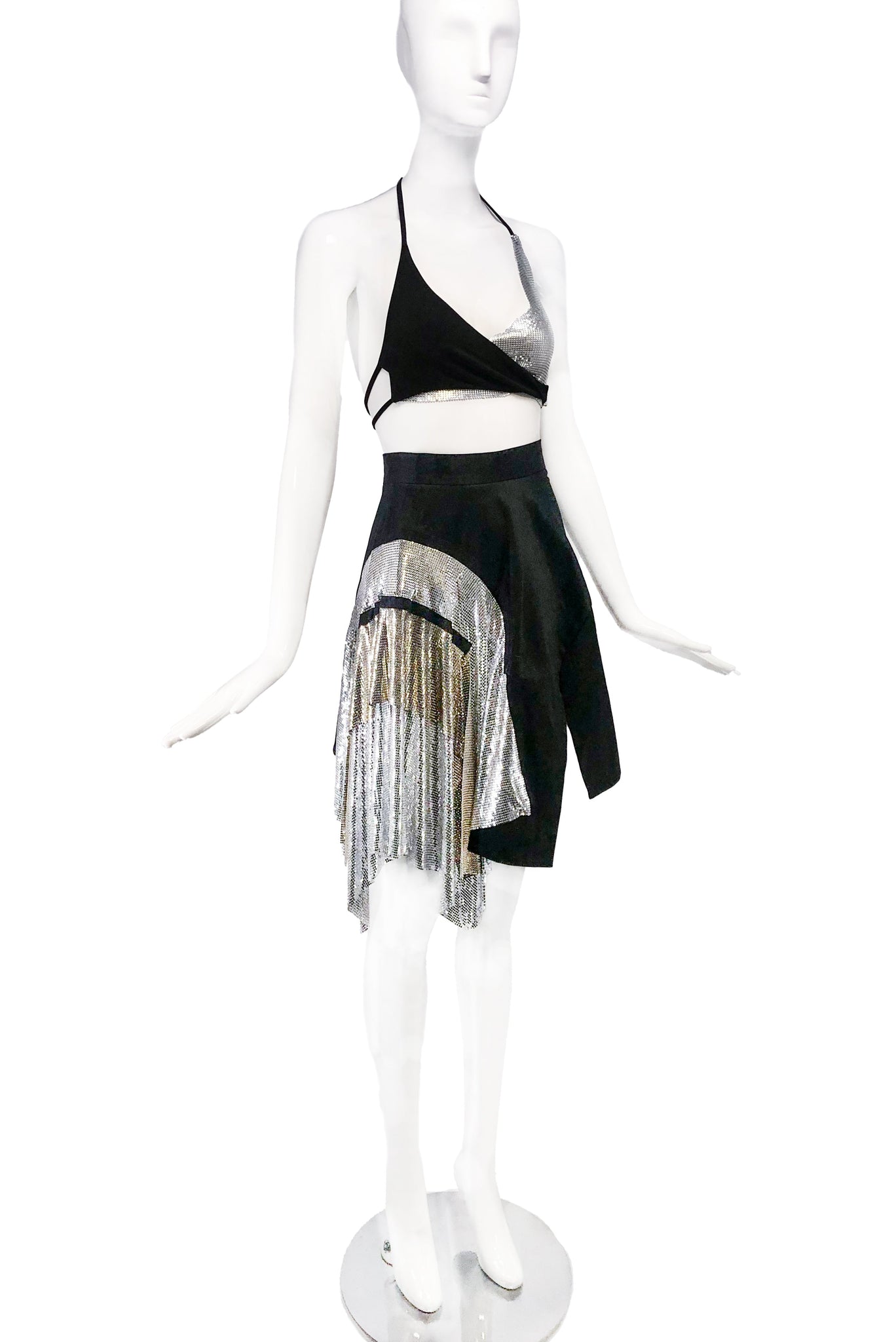 Versus Versace Black Asymmetrical Skirt with Oroton Chainmail SS2017
