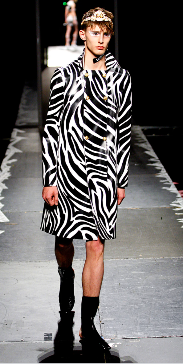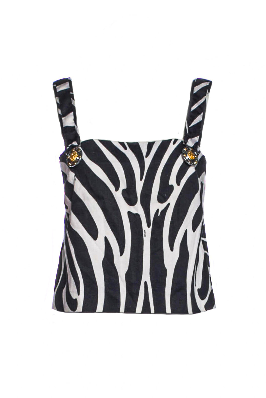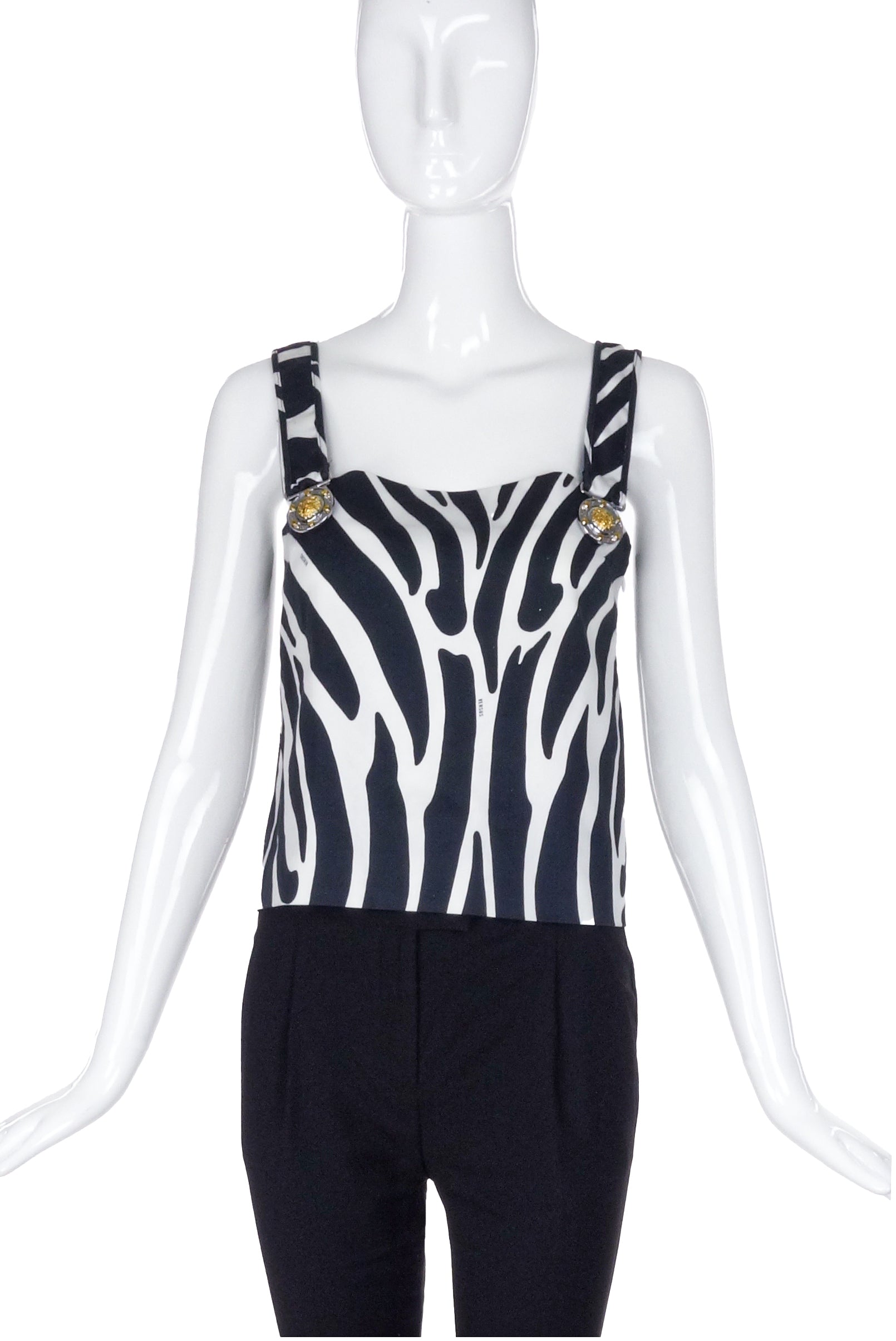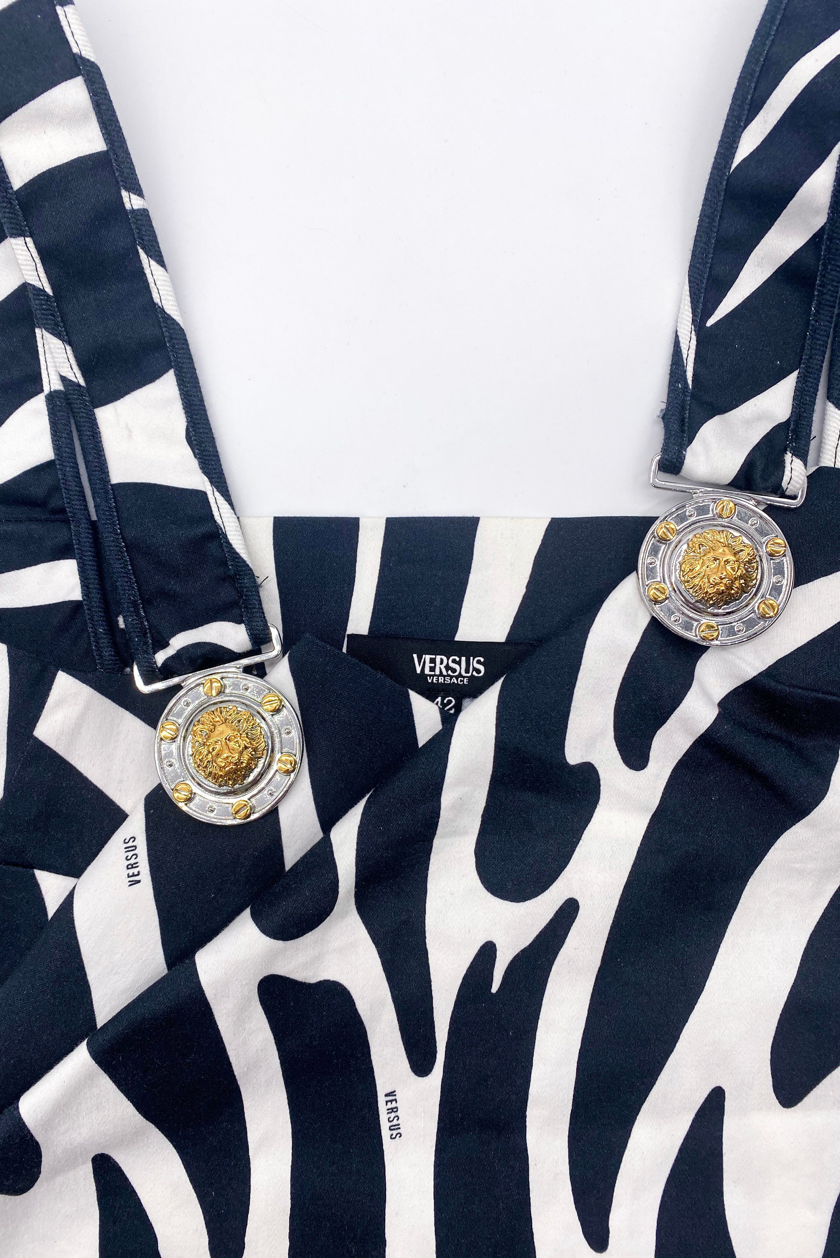 Versus Versace Black & White Zebra Print Tank Top & A Line Skirt with Lion Medallion Details Resort2014