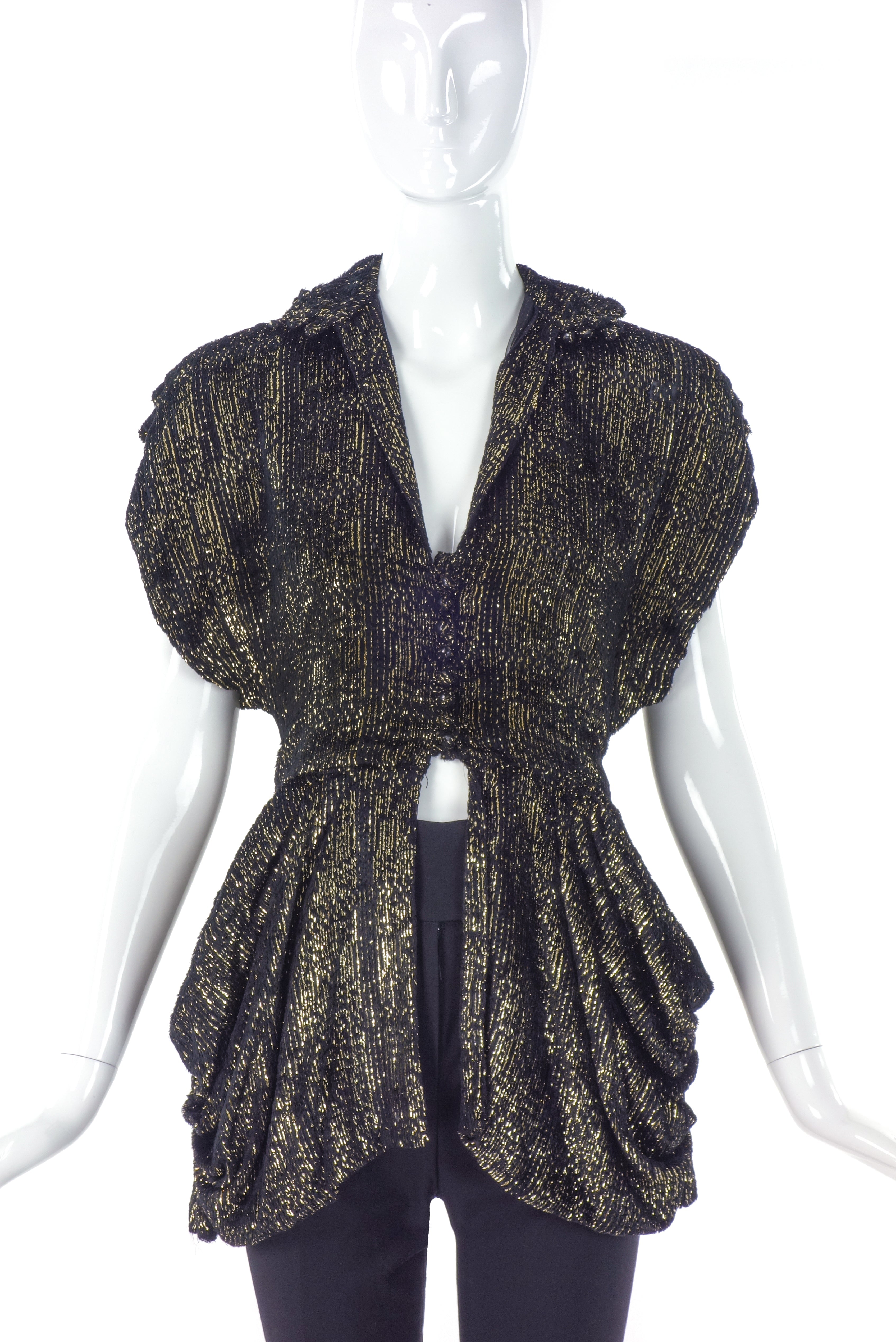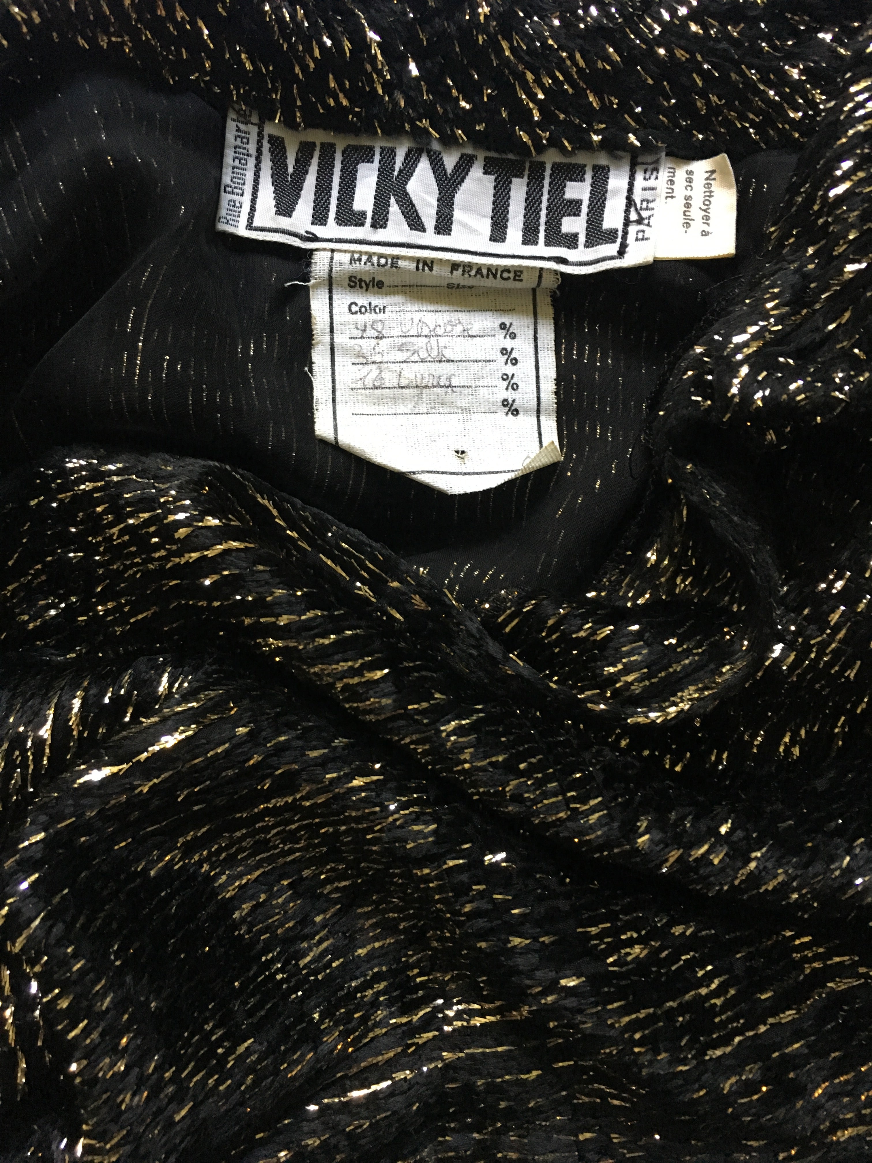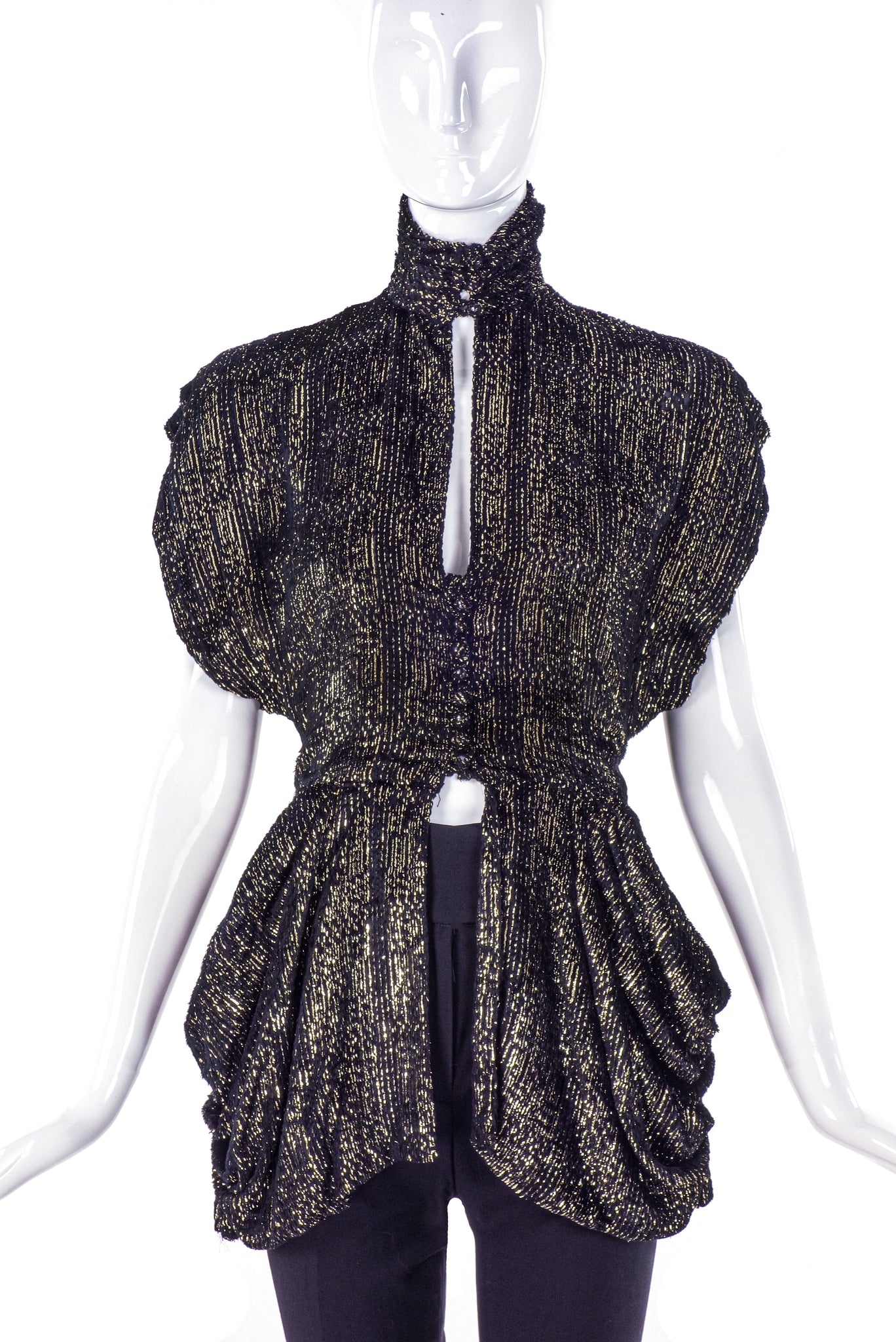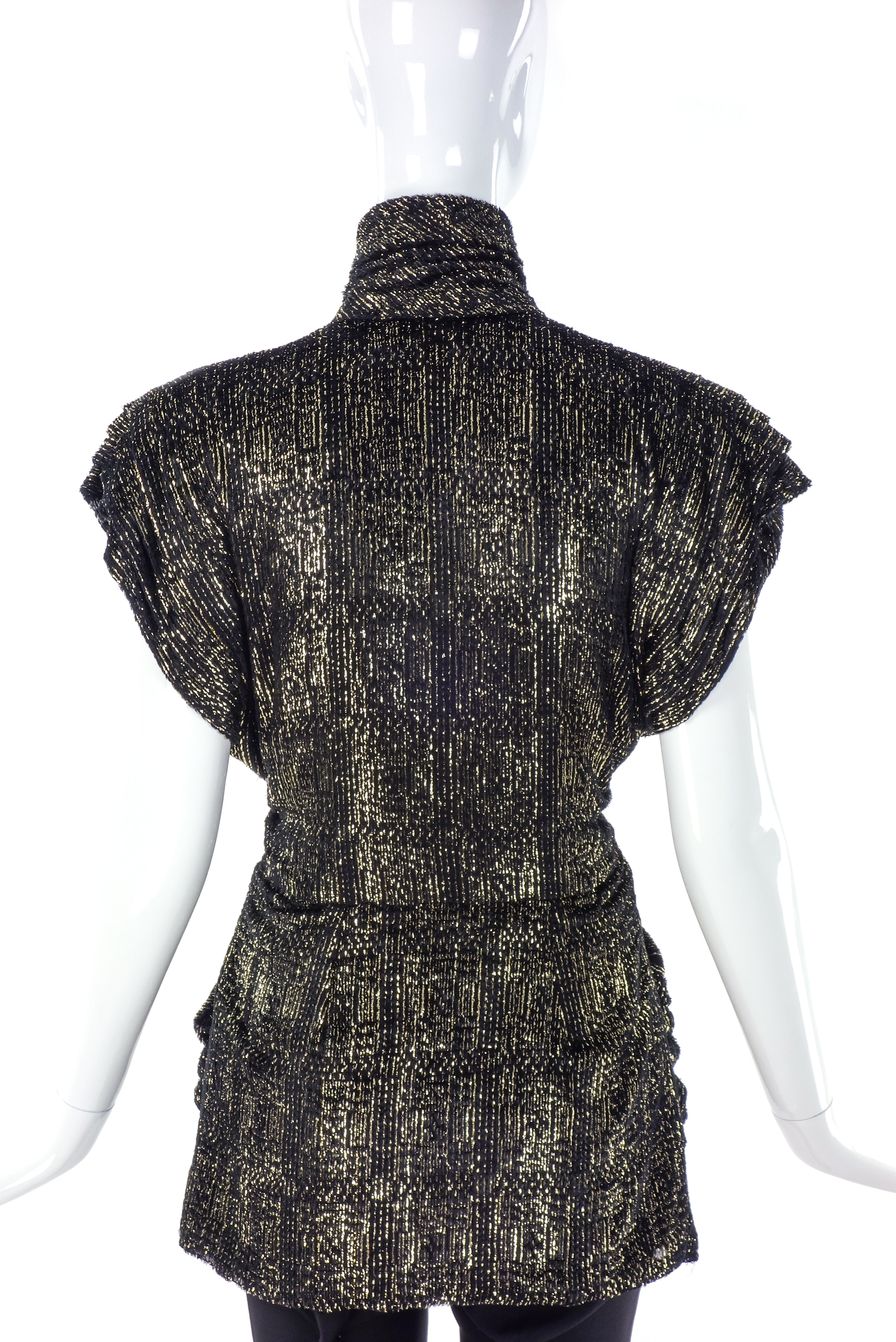 Vicky Tiel Paris Couture gold lame & black turtleneck peplum top.