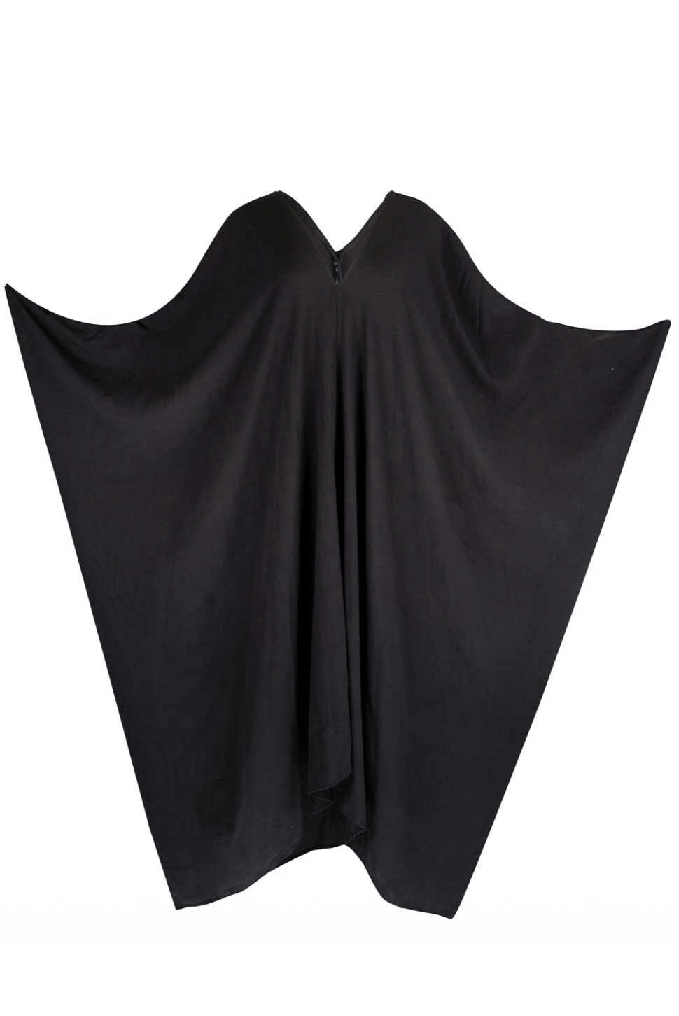 Vintage Black Crepe de Chine V Neck Draped Kaftan Dress #