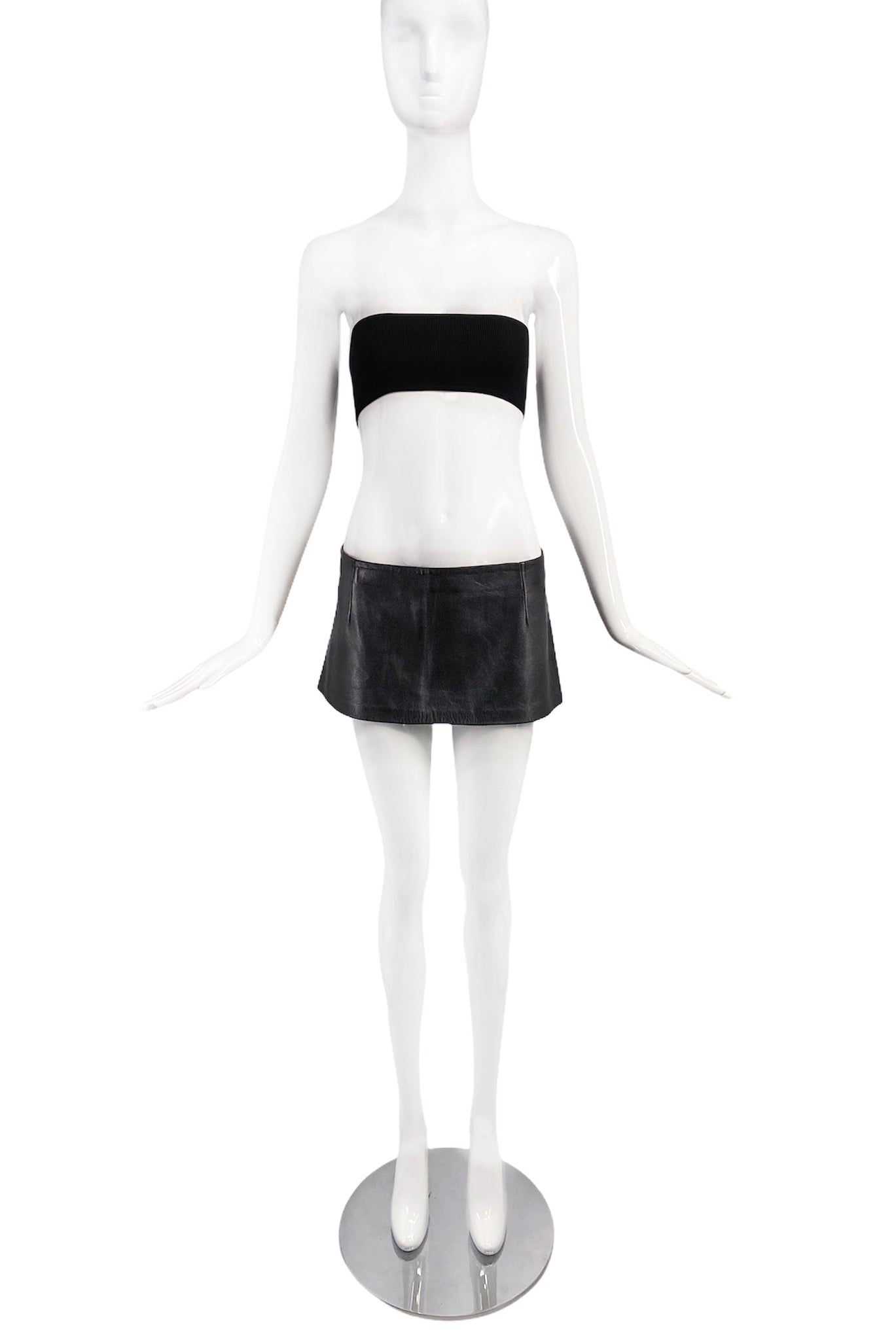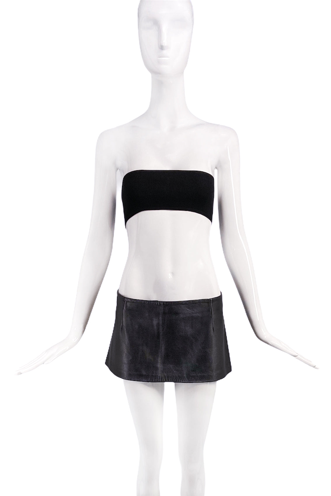 Vintage Black Leather Micro Mini "Belt" Skirt