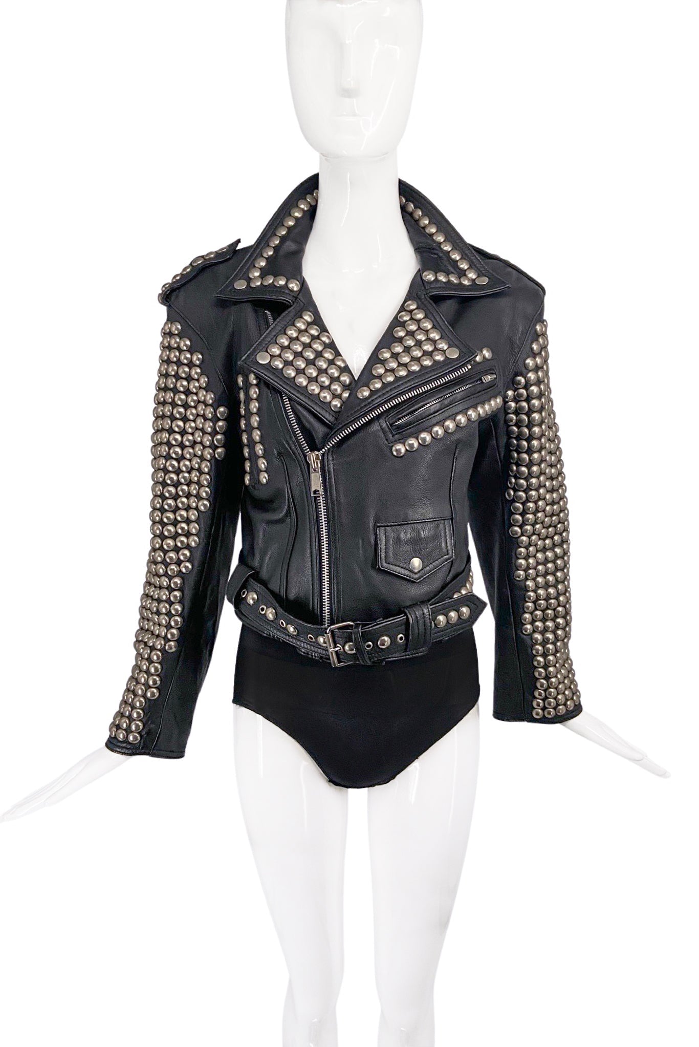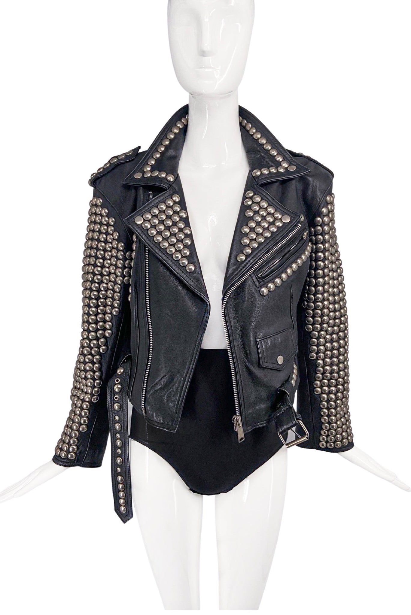 Vintage Black London Leatherwear NYC Fully Studded Cropped Belted Leather Jacket