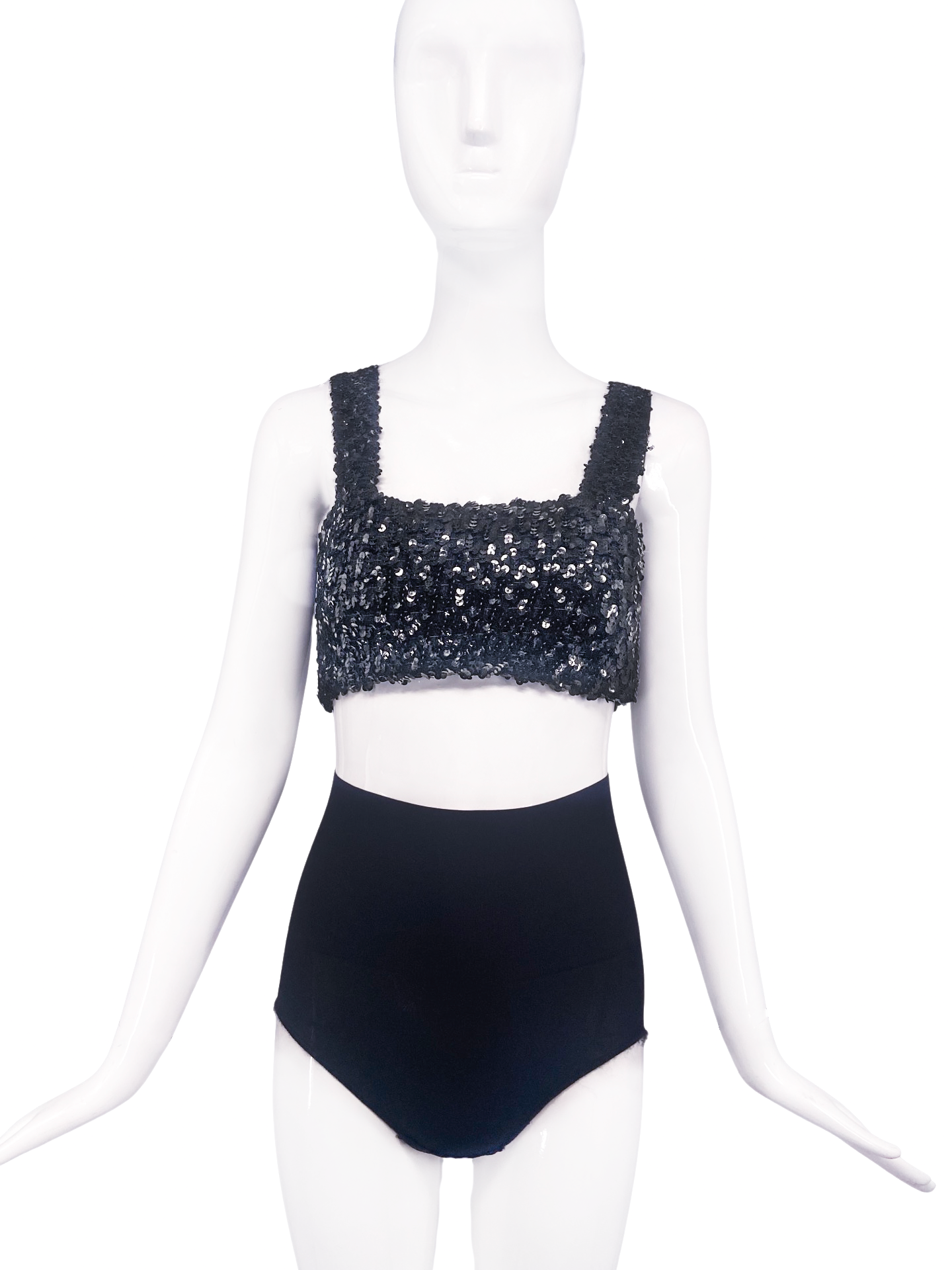 A vintage tank top in a crop style with black sequin all over the slightly stretch fabric.