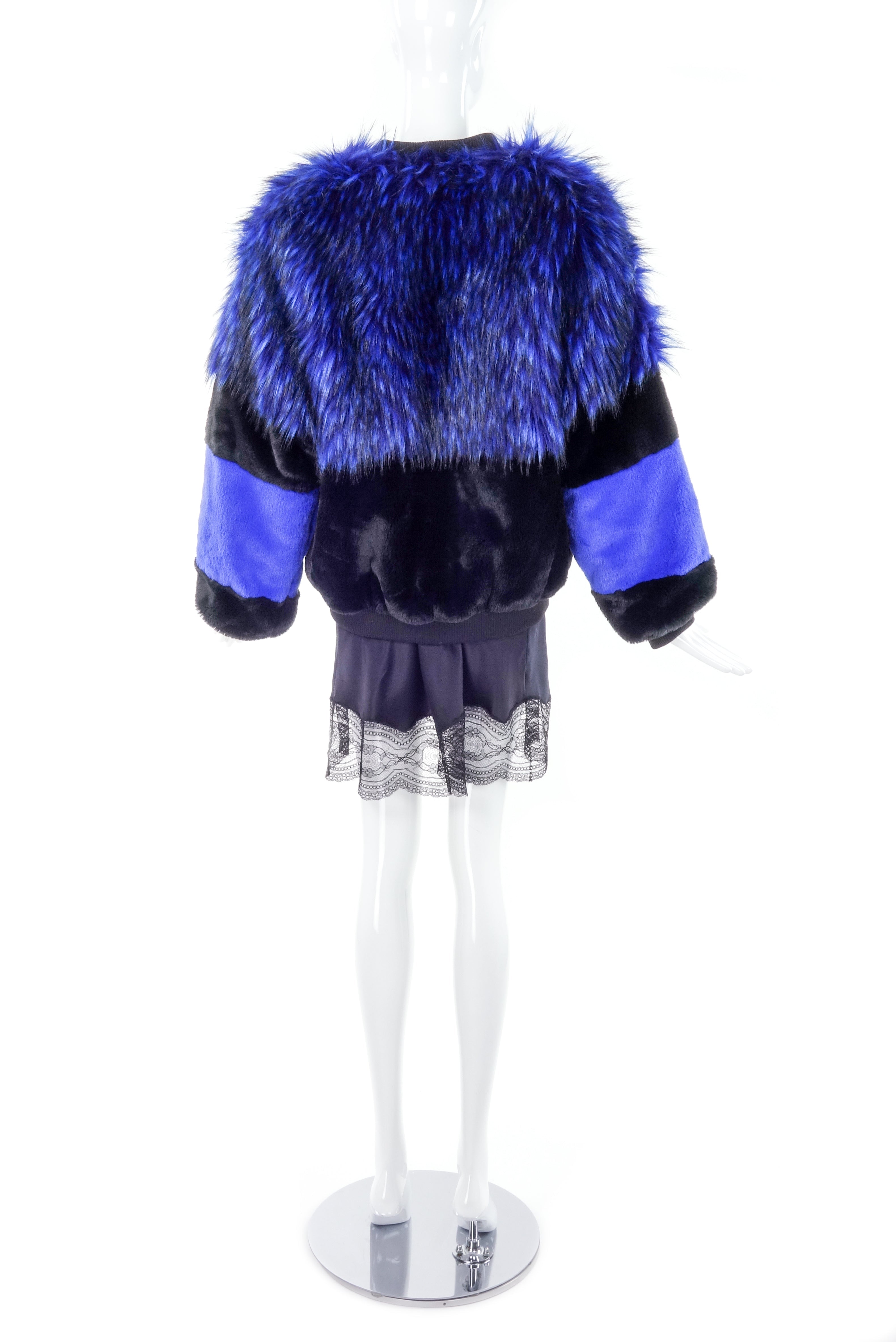 Vintage Blue and Black Graphic Faux Fur Jacket