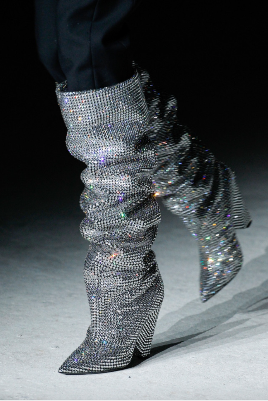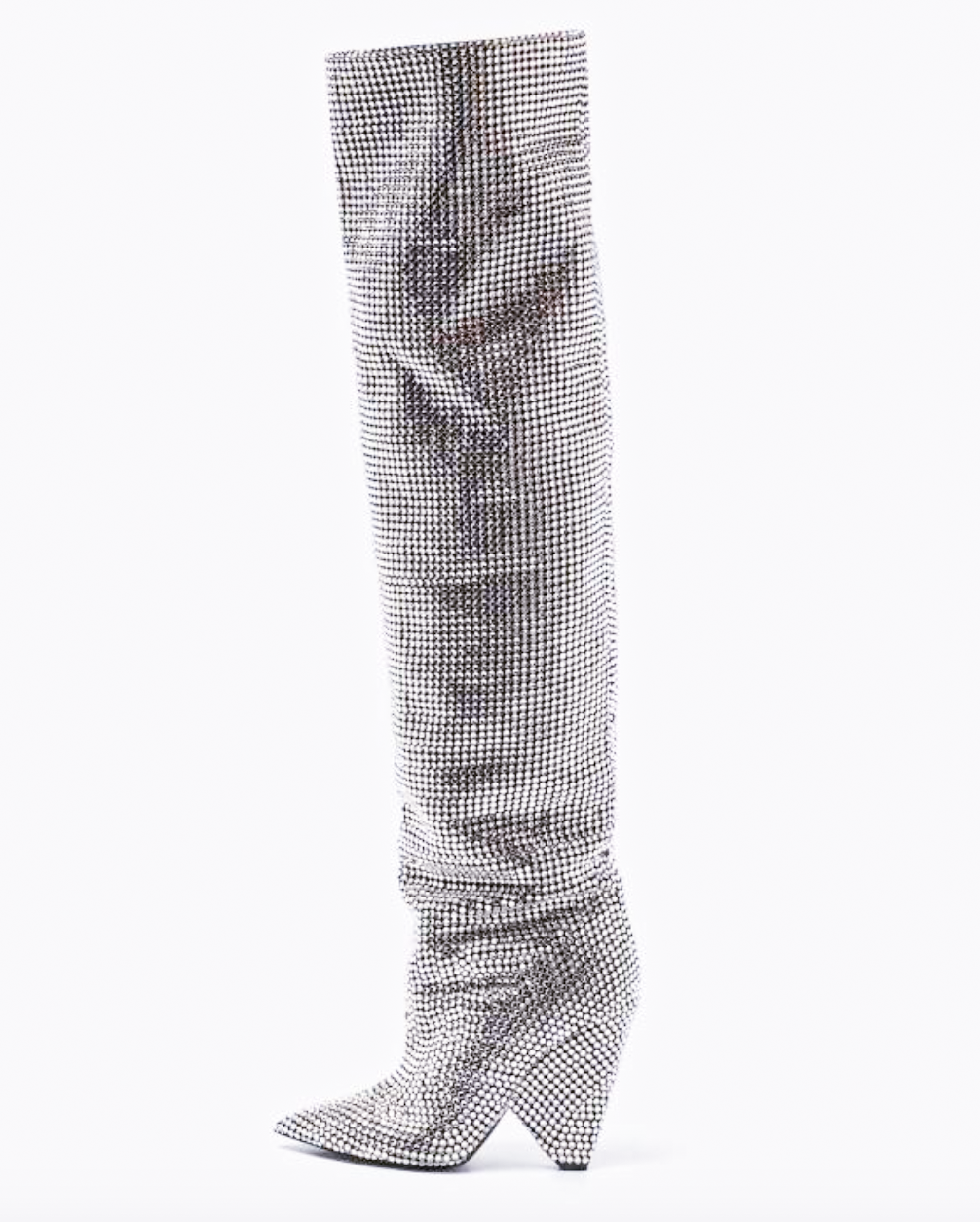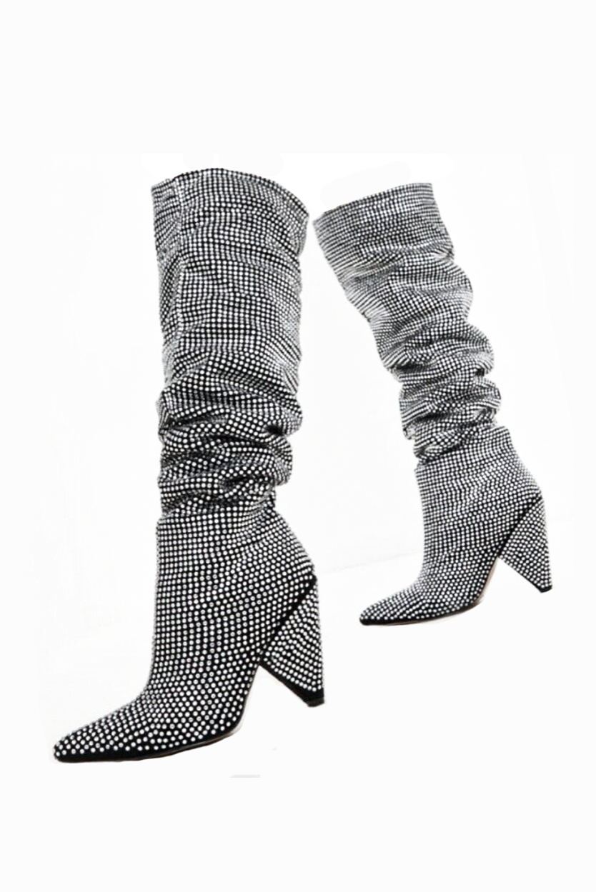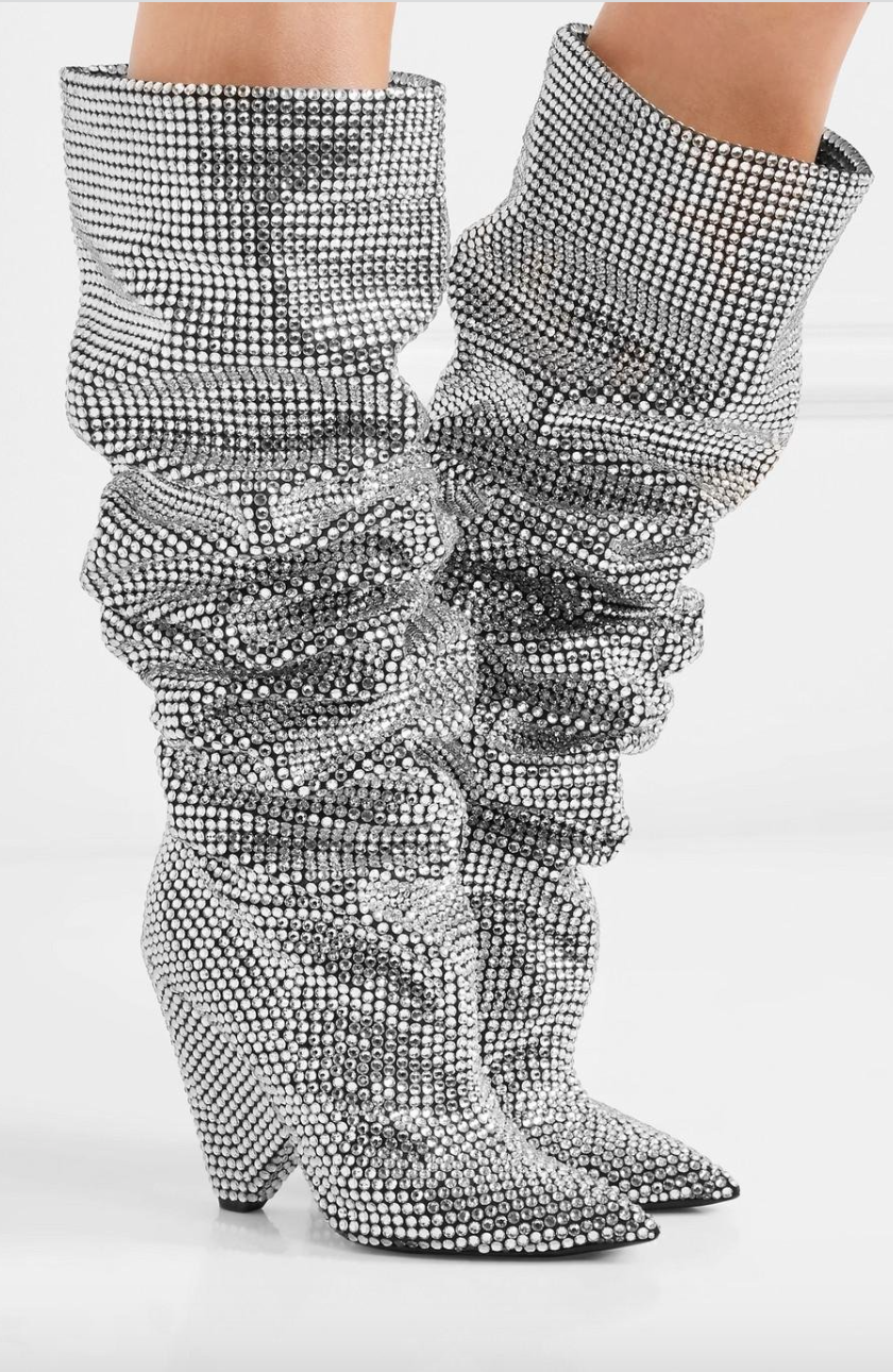 Vintage Crystal Saint Laurent Niki Style Over Knee Slouch Boots