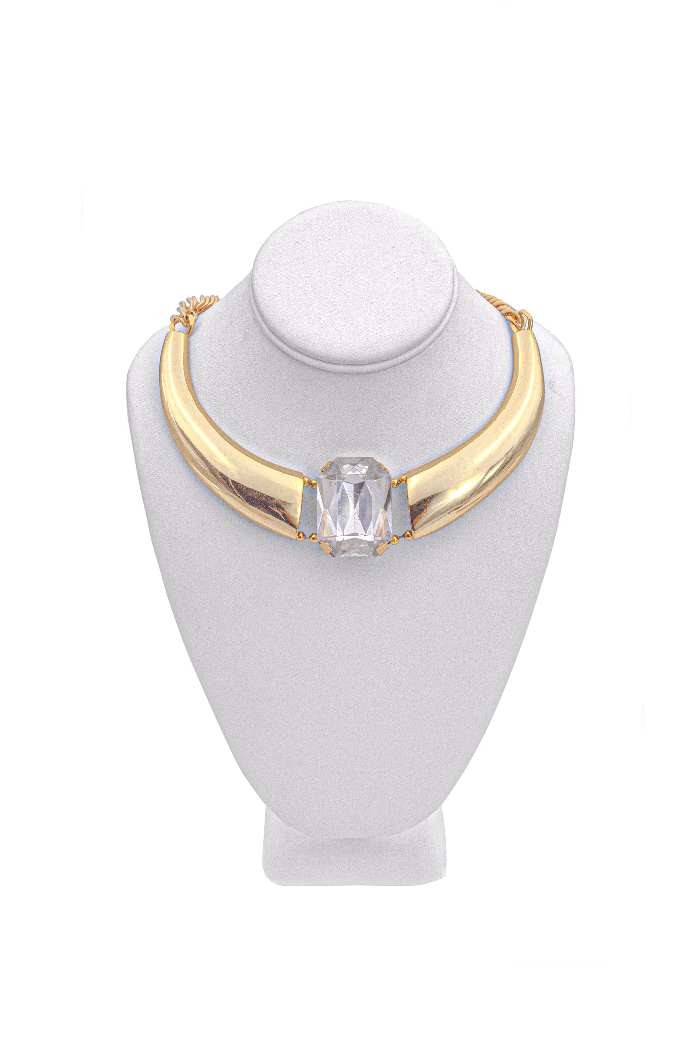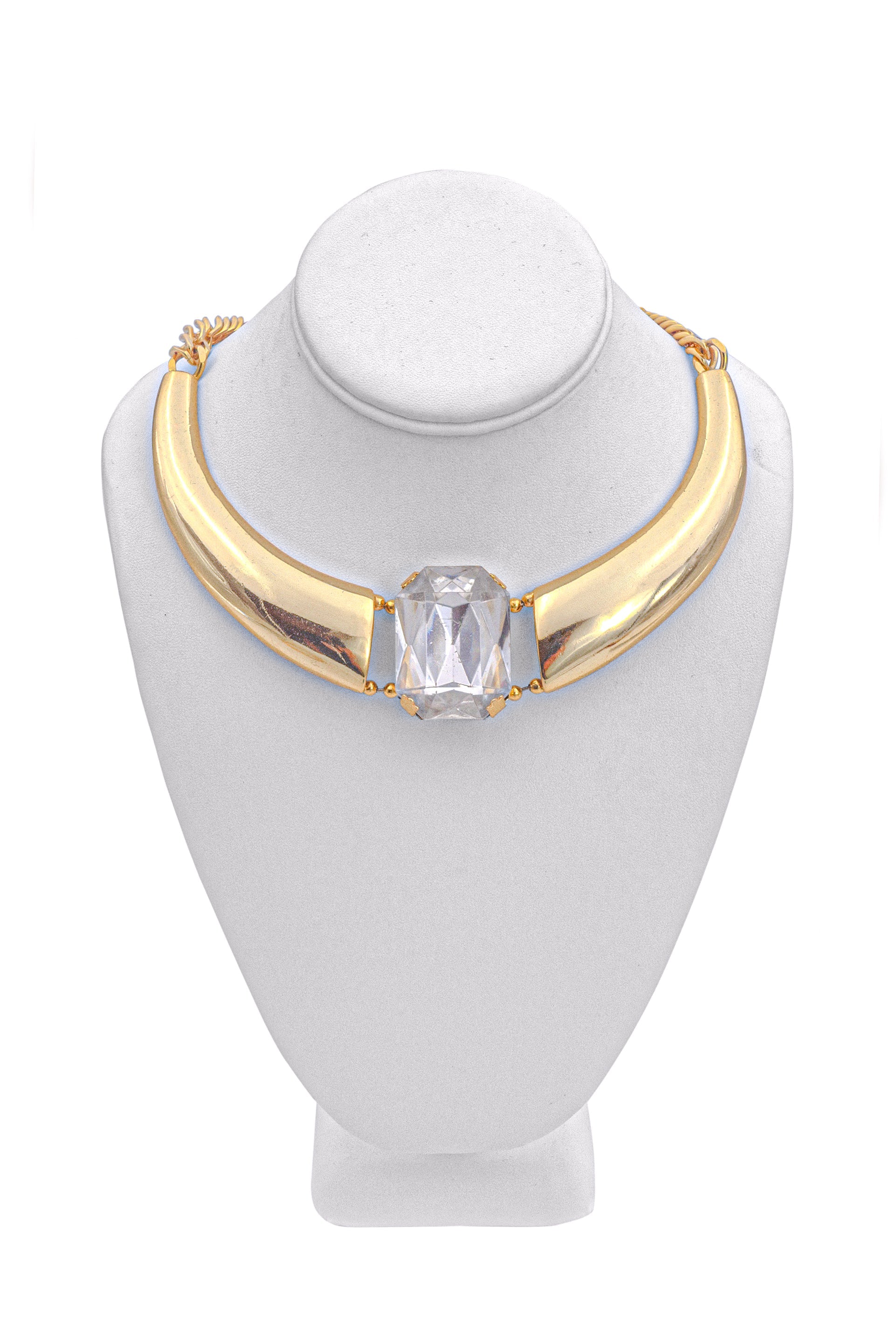 Vintage Gold Giant Square Crystal Diamond Necklace Choker