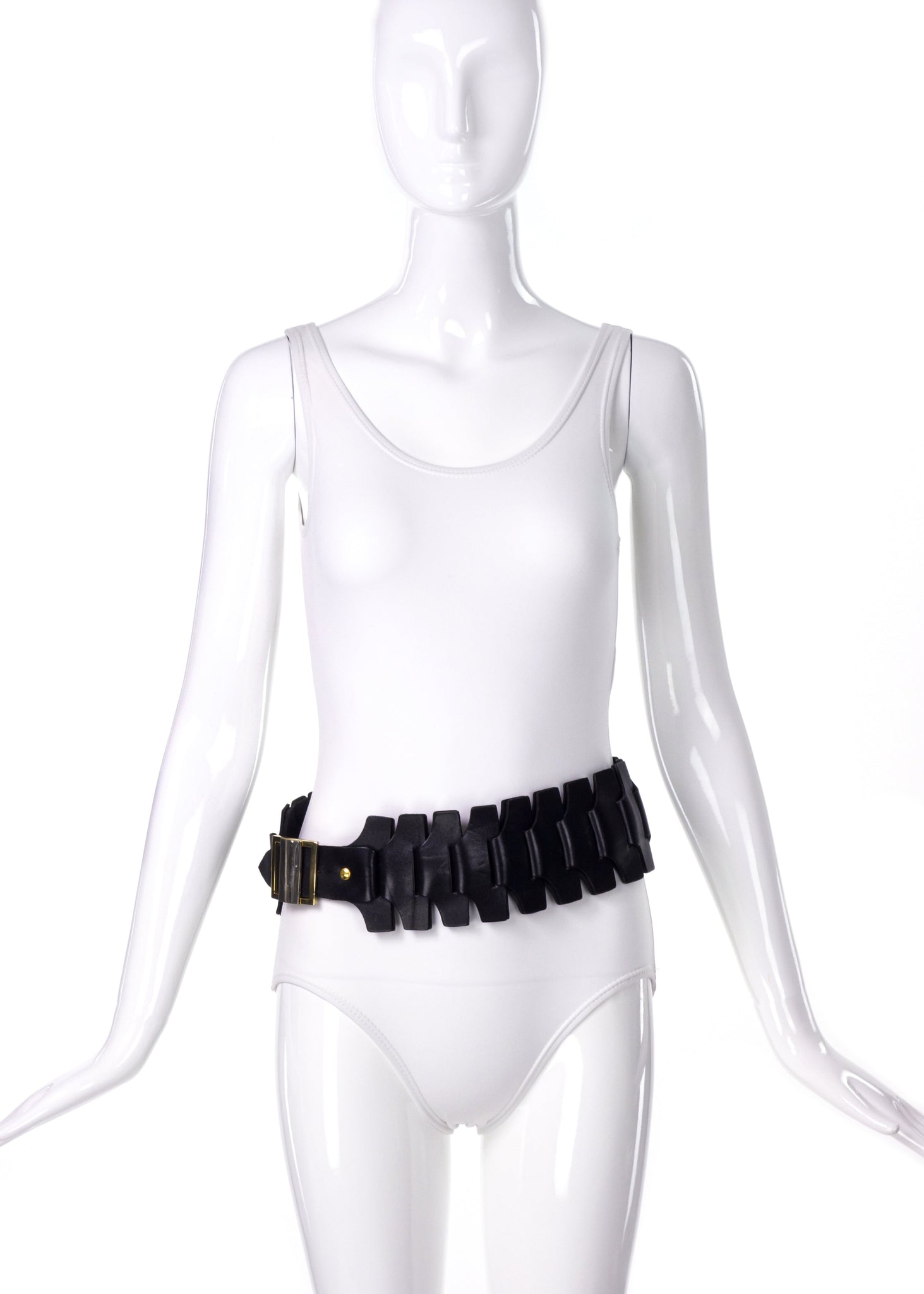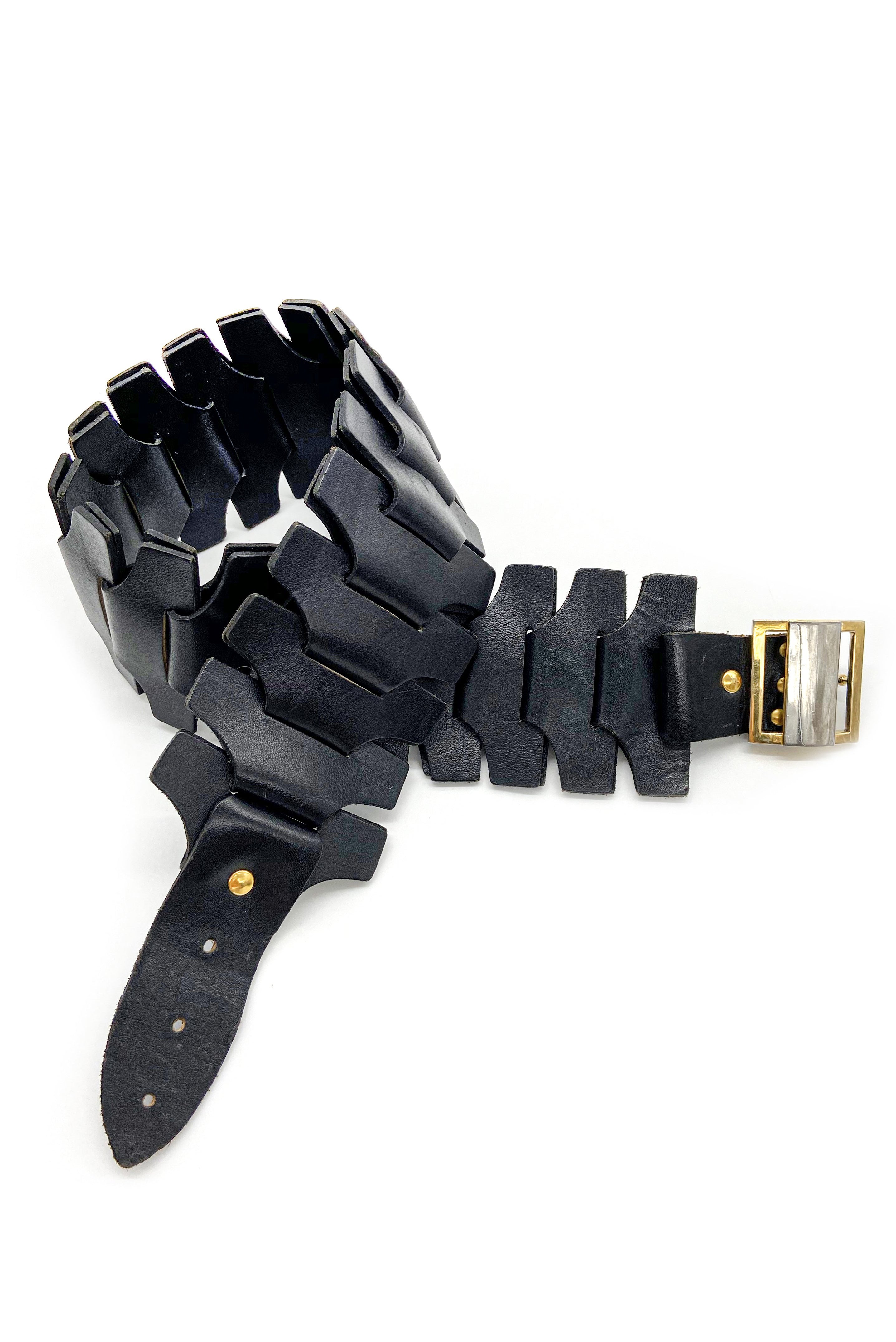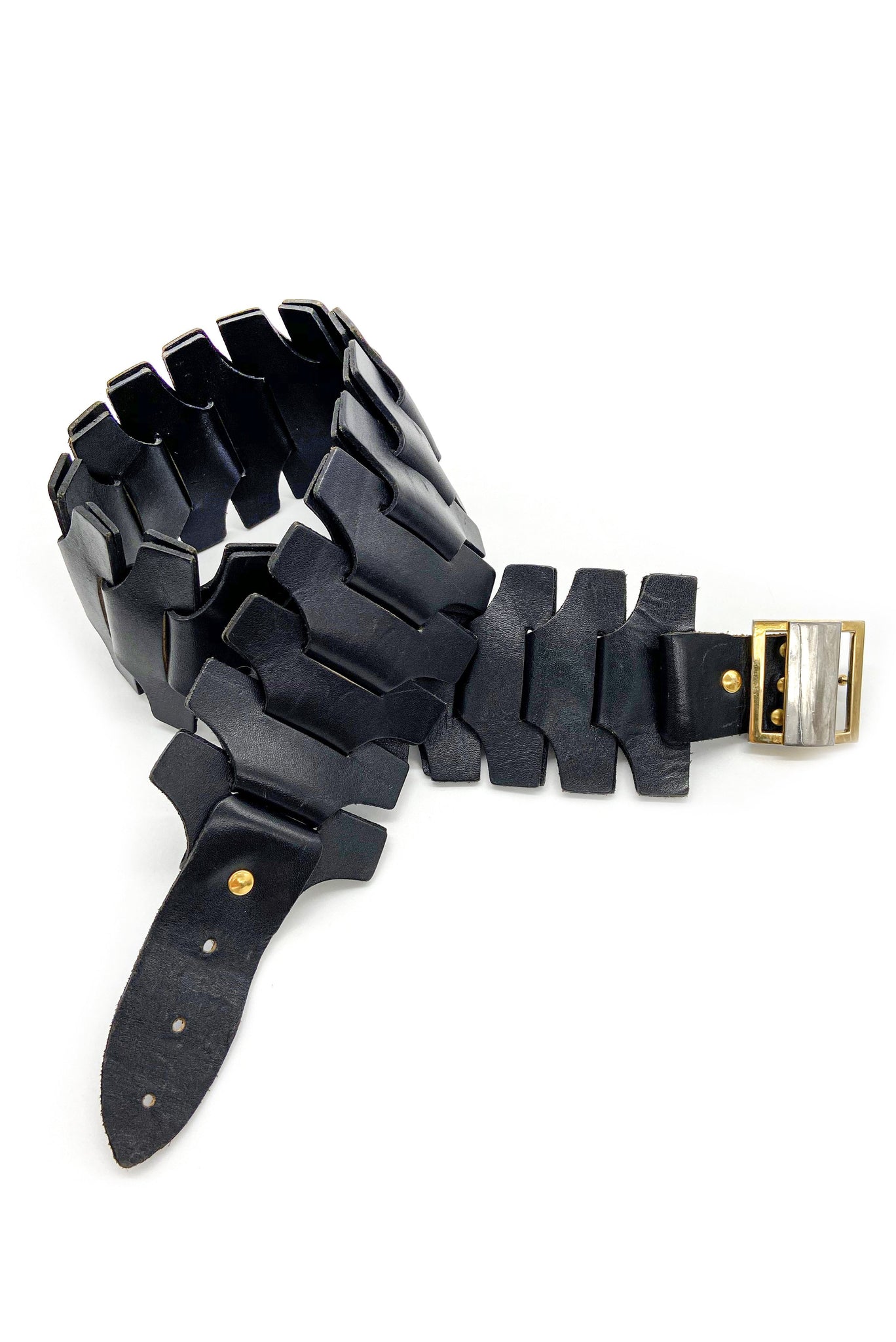 Vintage Interlocked Wide Leather "Car Tire Track" Belt