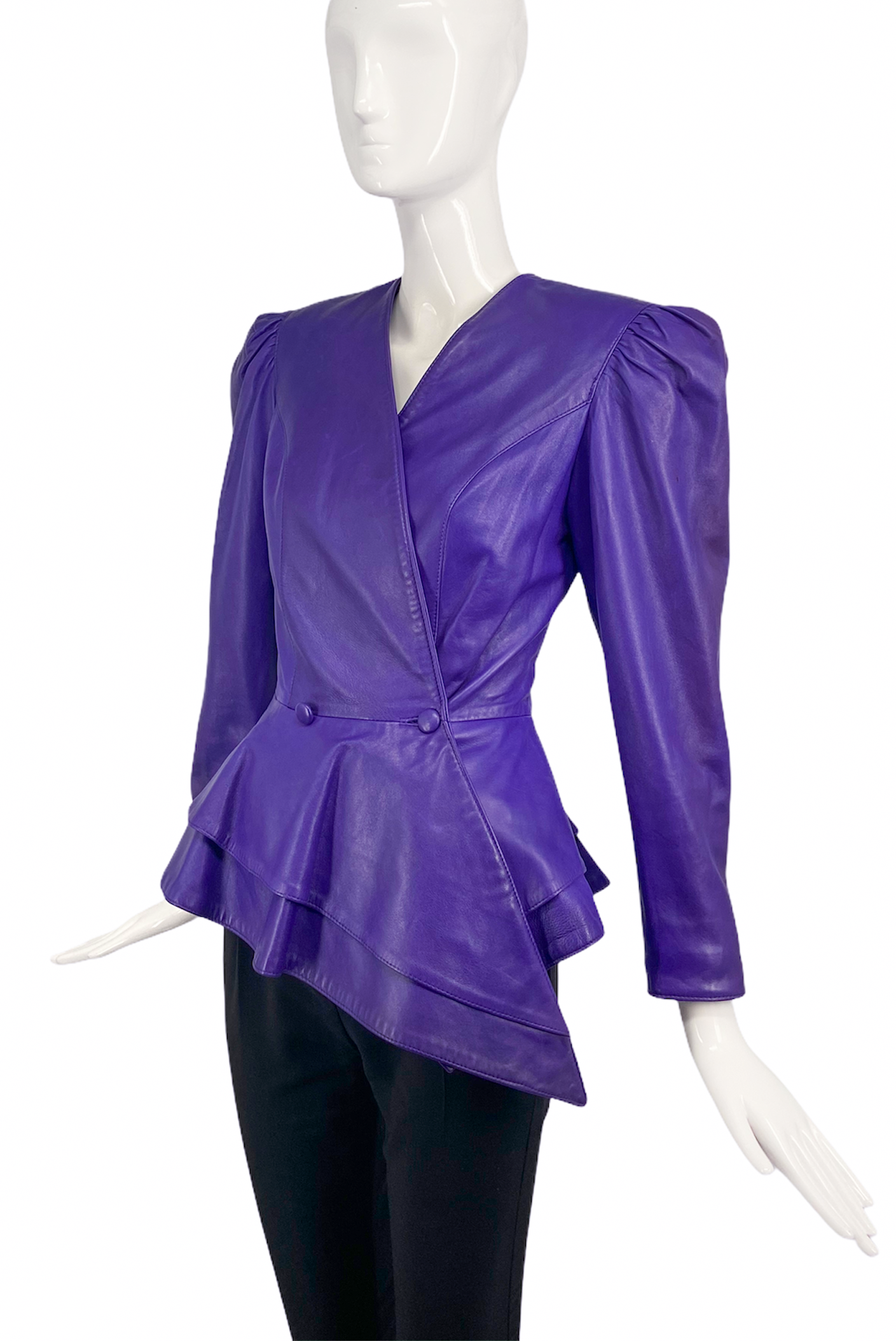 Vintage Purple Leather Fitted Asymmetrical Peplum Jacket