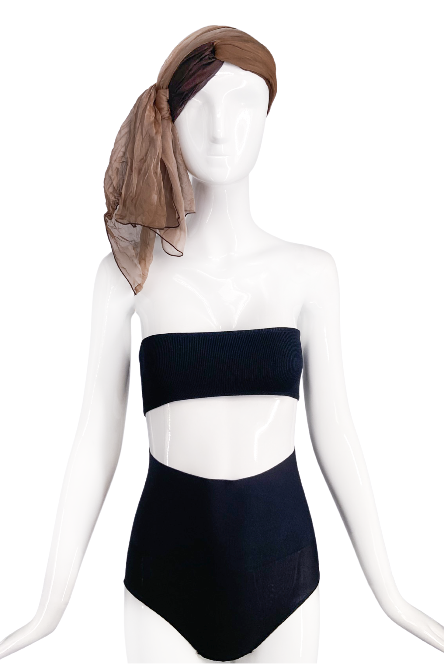 Vintage Sheer Brown Beige Ombre Chiffon Scarf / Head Scarf