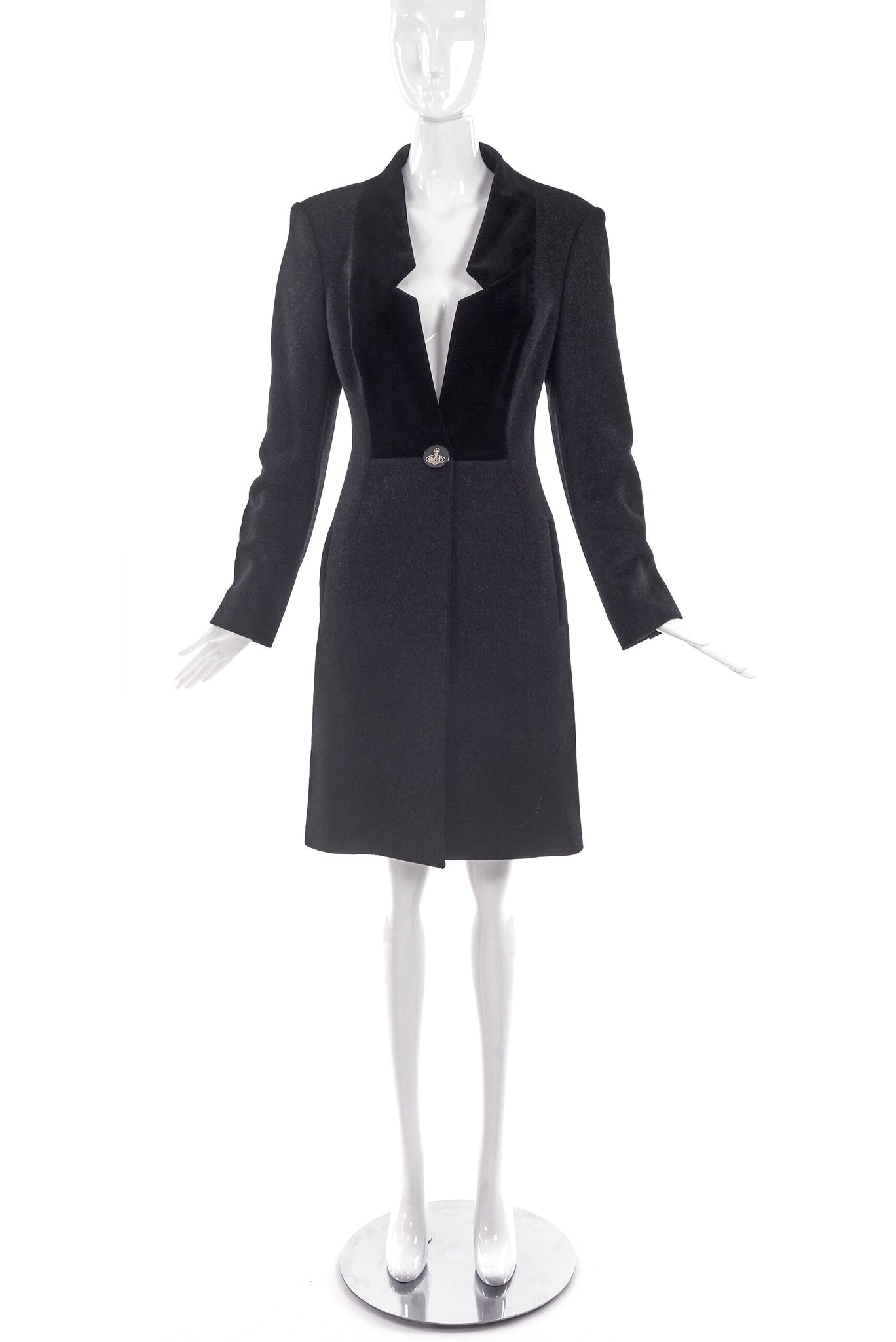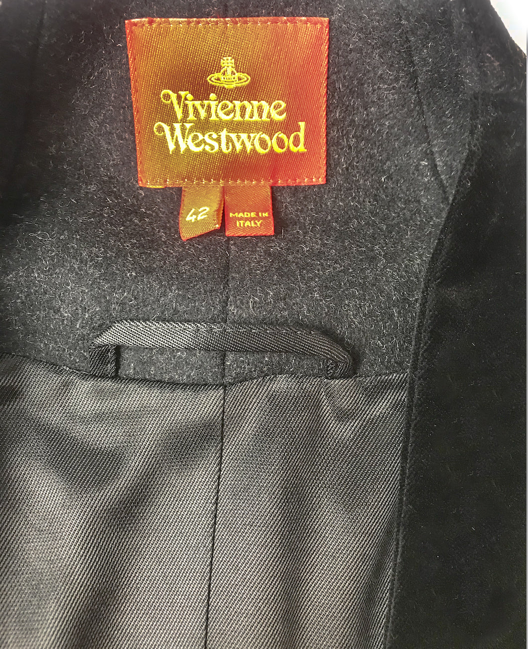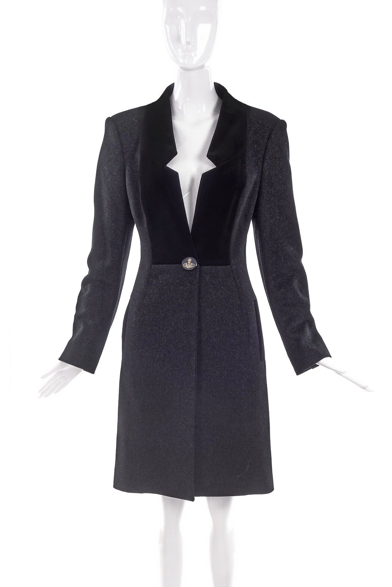 Vivienne Westwood Gray Wool Coat with Black Velvet inlay