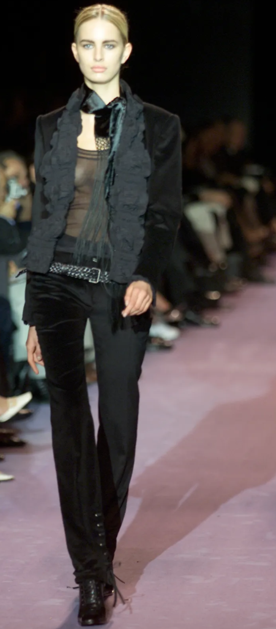 YSL by Tom Ford Velvet Blazer with Ruffle front from the Fall Winter 2001 Collection, Runway look 22