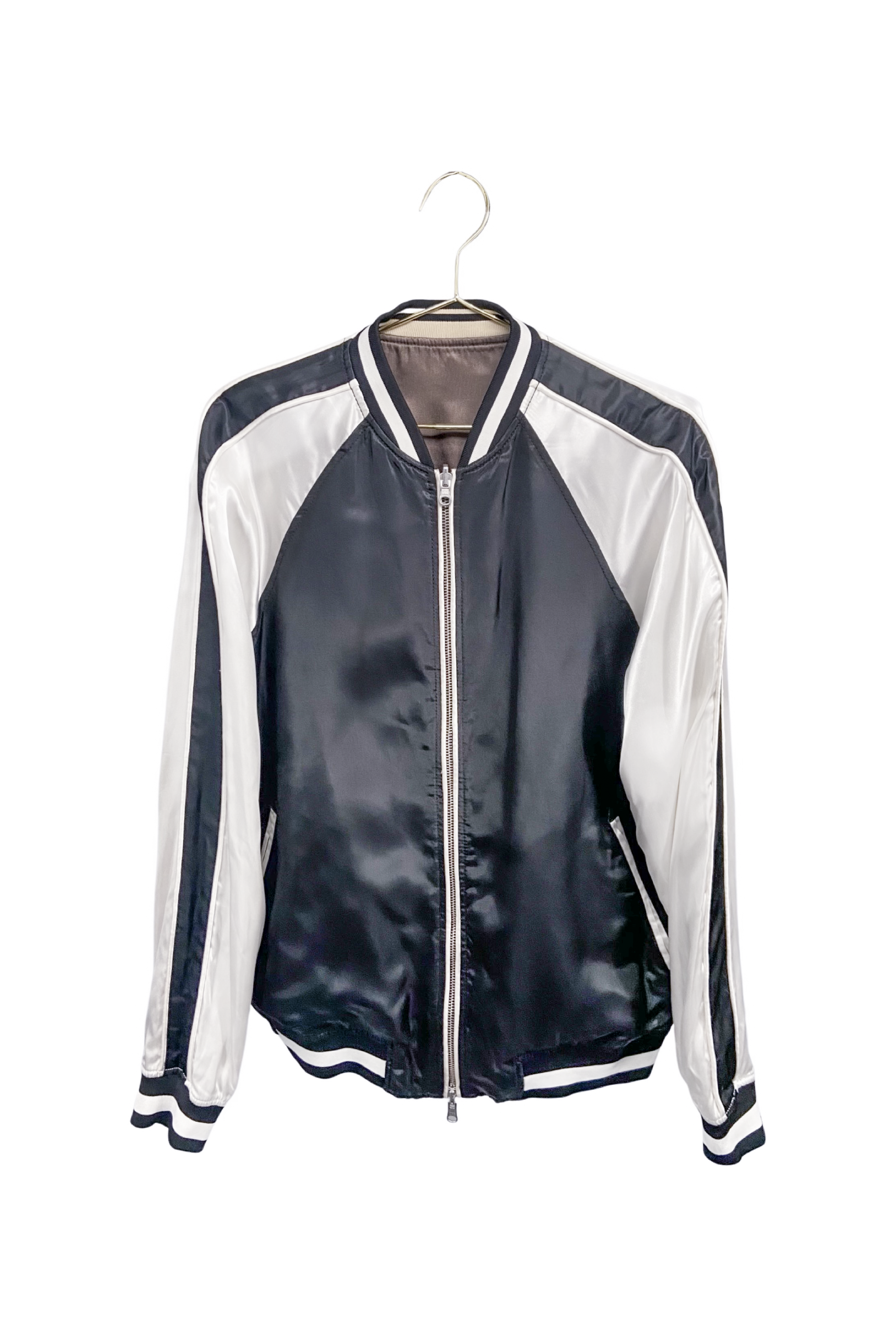 3.1 Philip Lim Black and White Reversible Satin Bomber Jacket