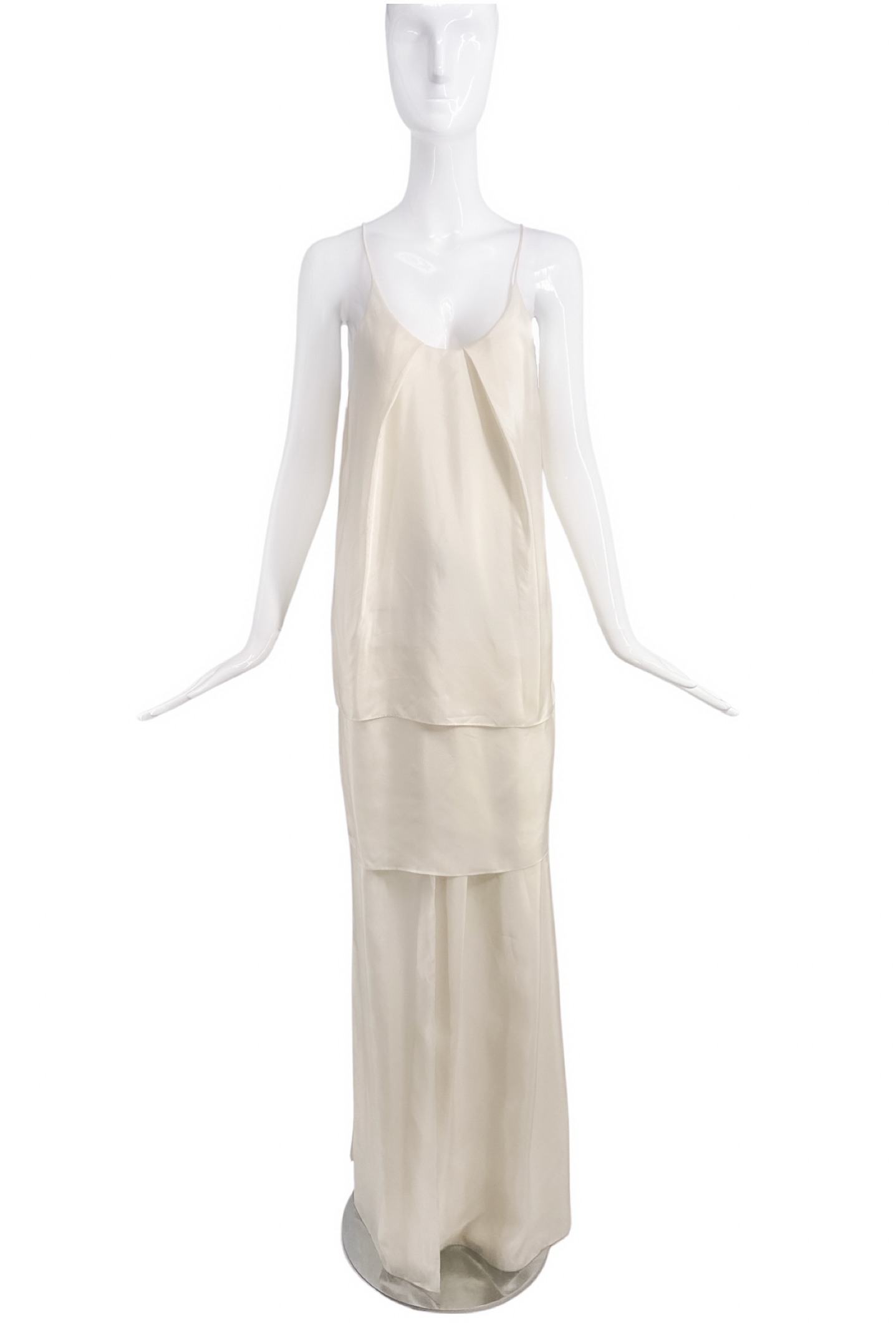 Acne Studios Ivory Silk Conceptual Layered Long Slip Dress