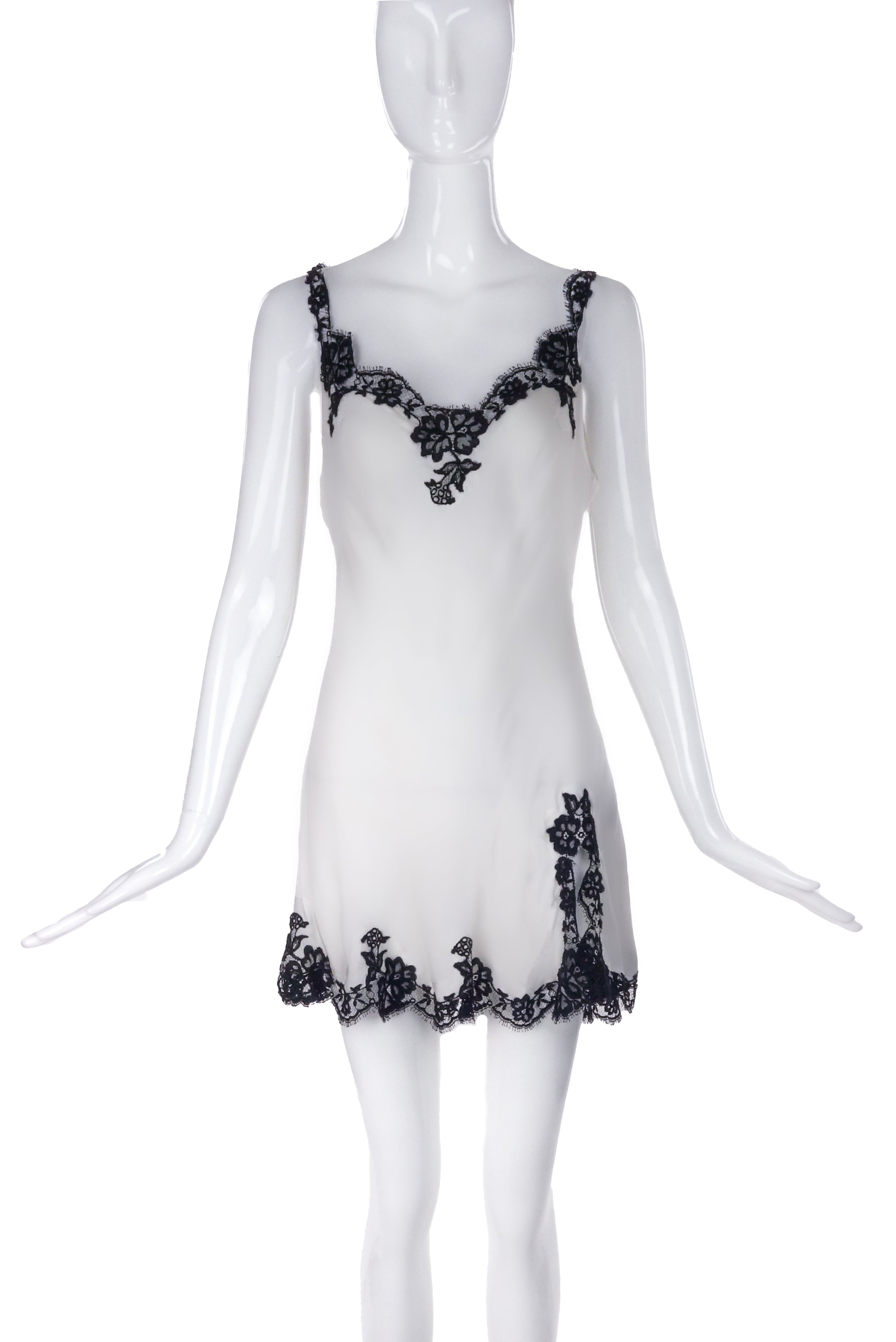 Agent Provocateur White Satin Negligee Slip Dress with Black Floral Lace