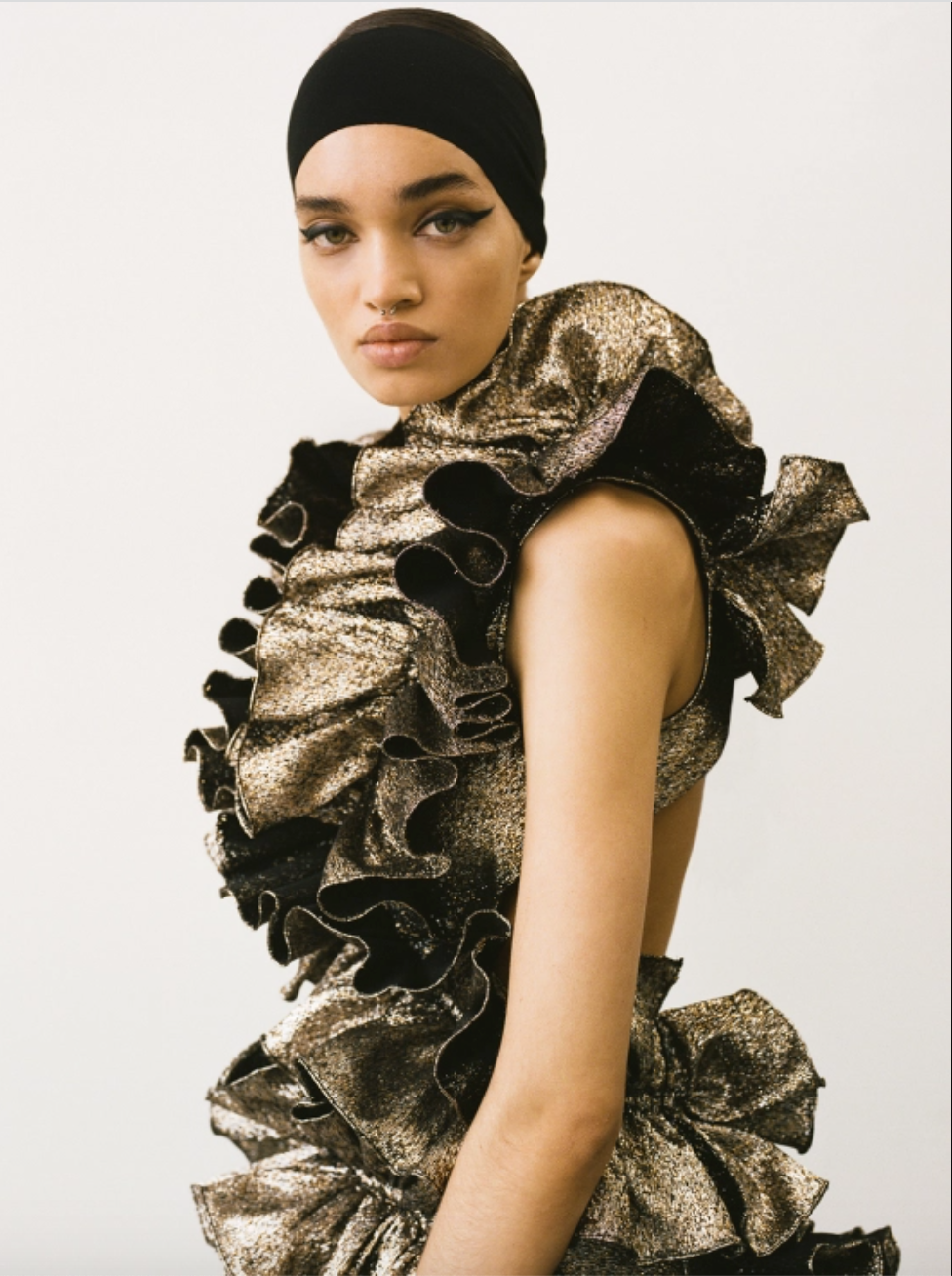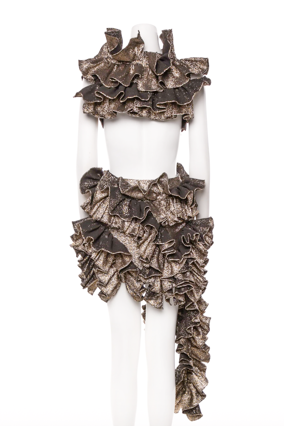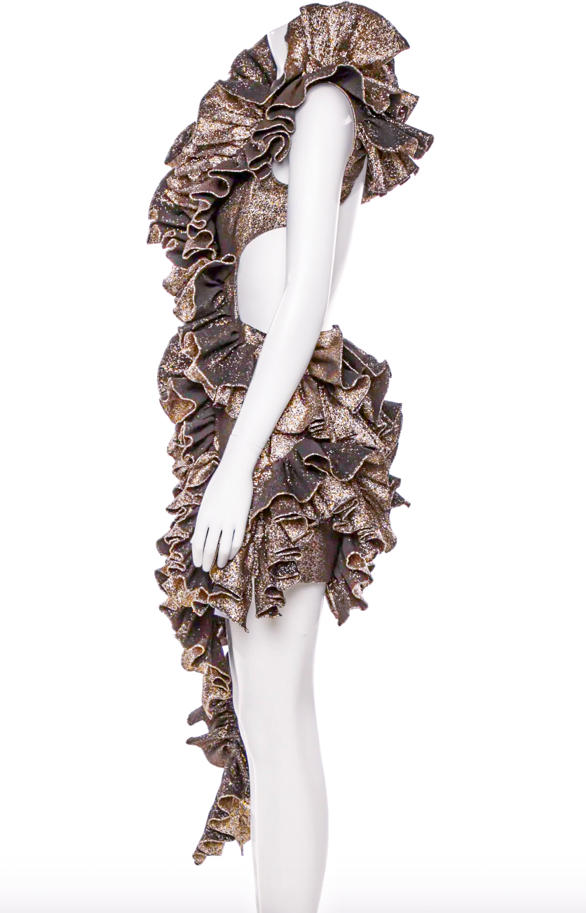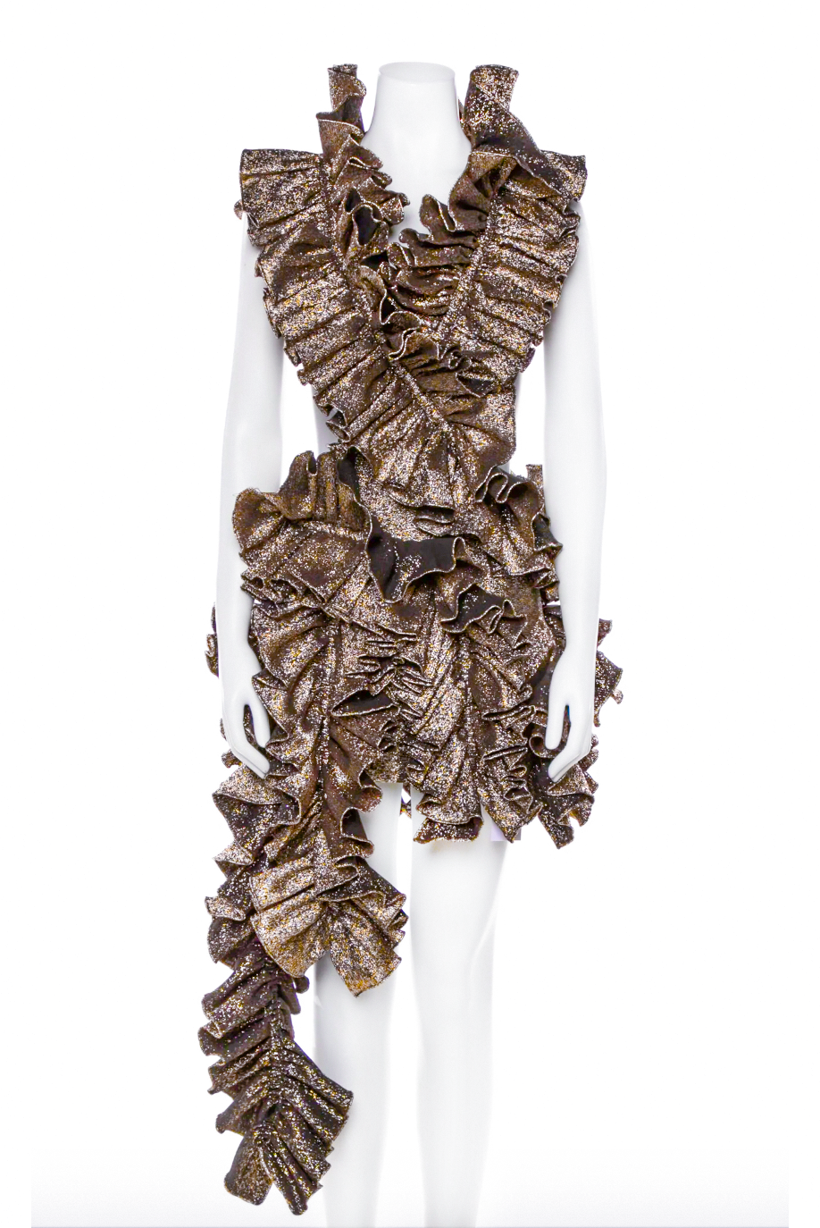 Aknvas Gold Metallic Ruffle Sculpture Dress