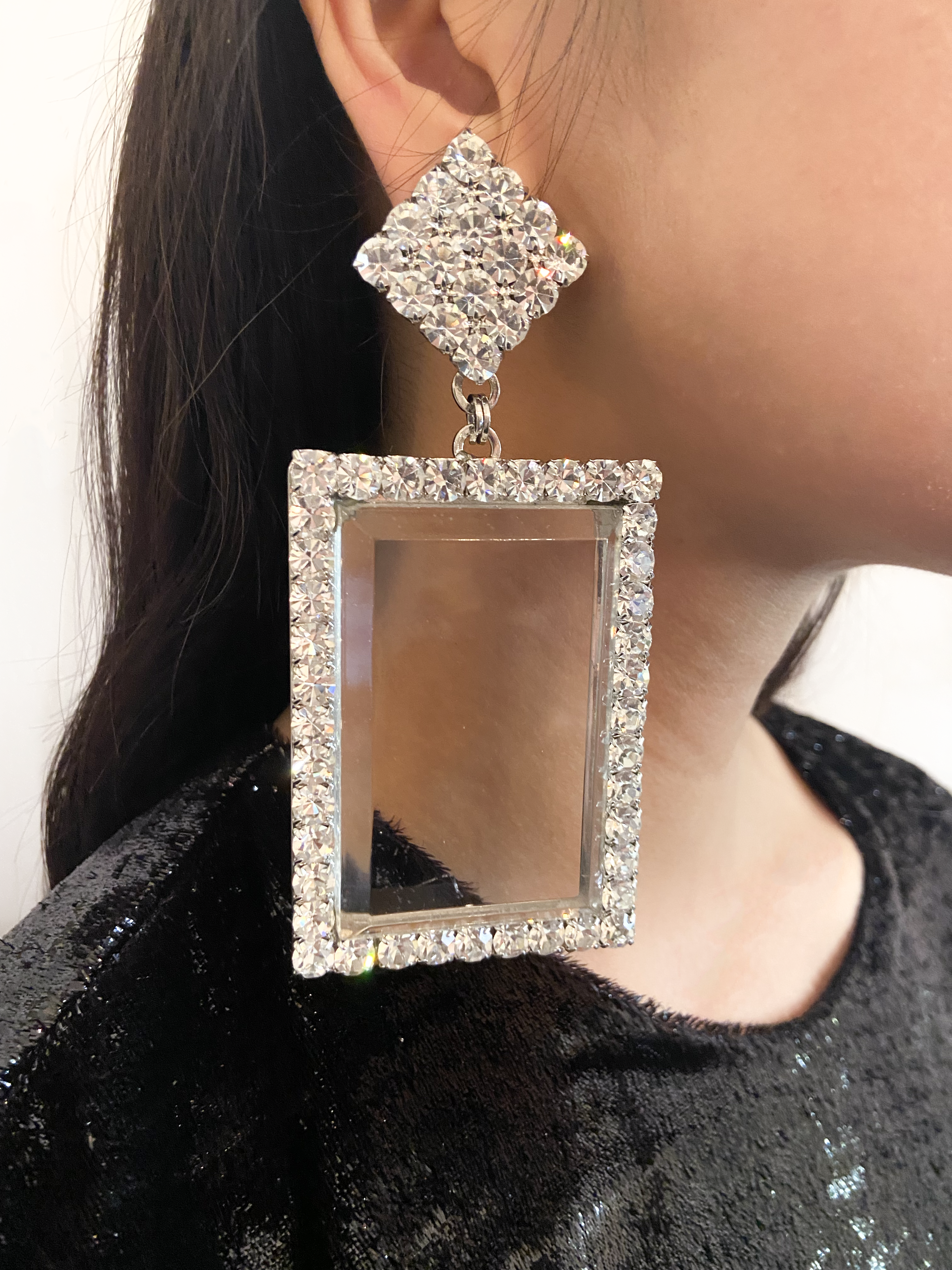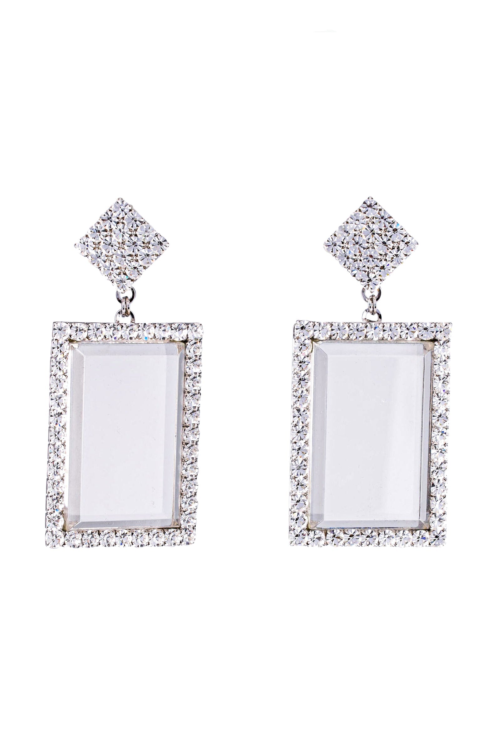 Alessandra Rich Silver Crystal Rectangular Oversize Statement Earrings