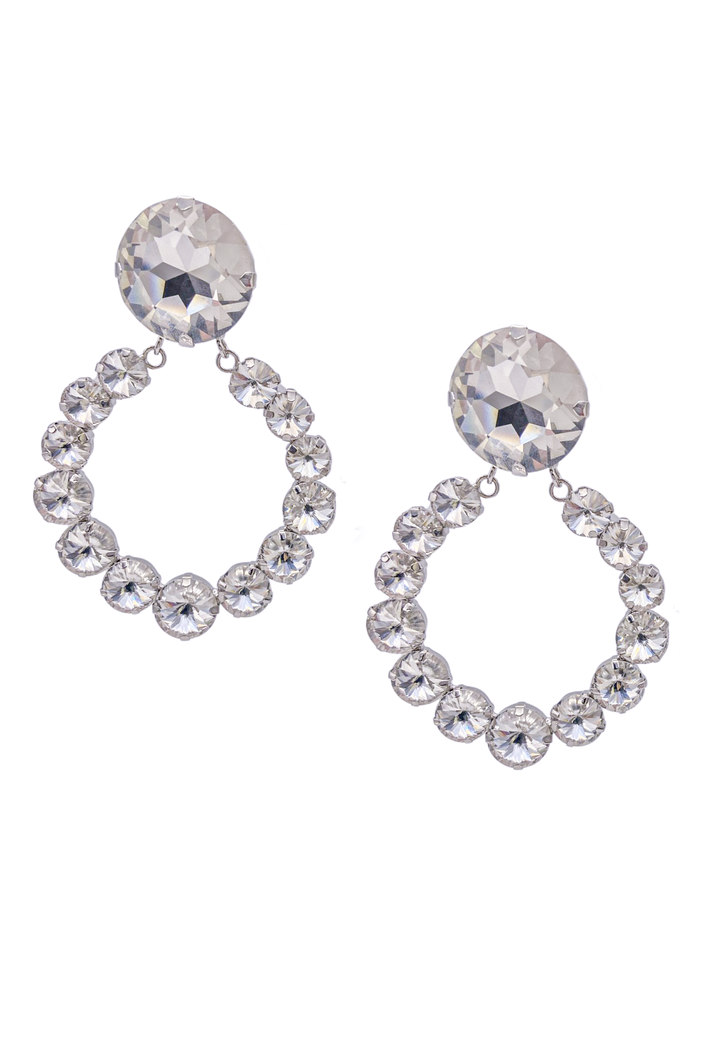 Alessandra Rich Silver Diamond Crystal Oversized Hoop Earrings