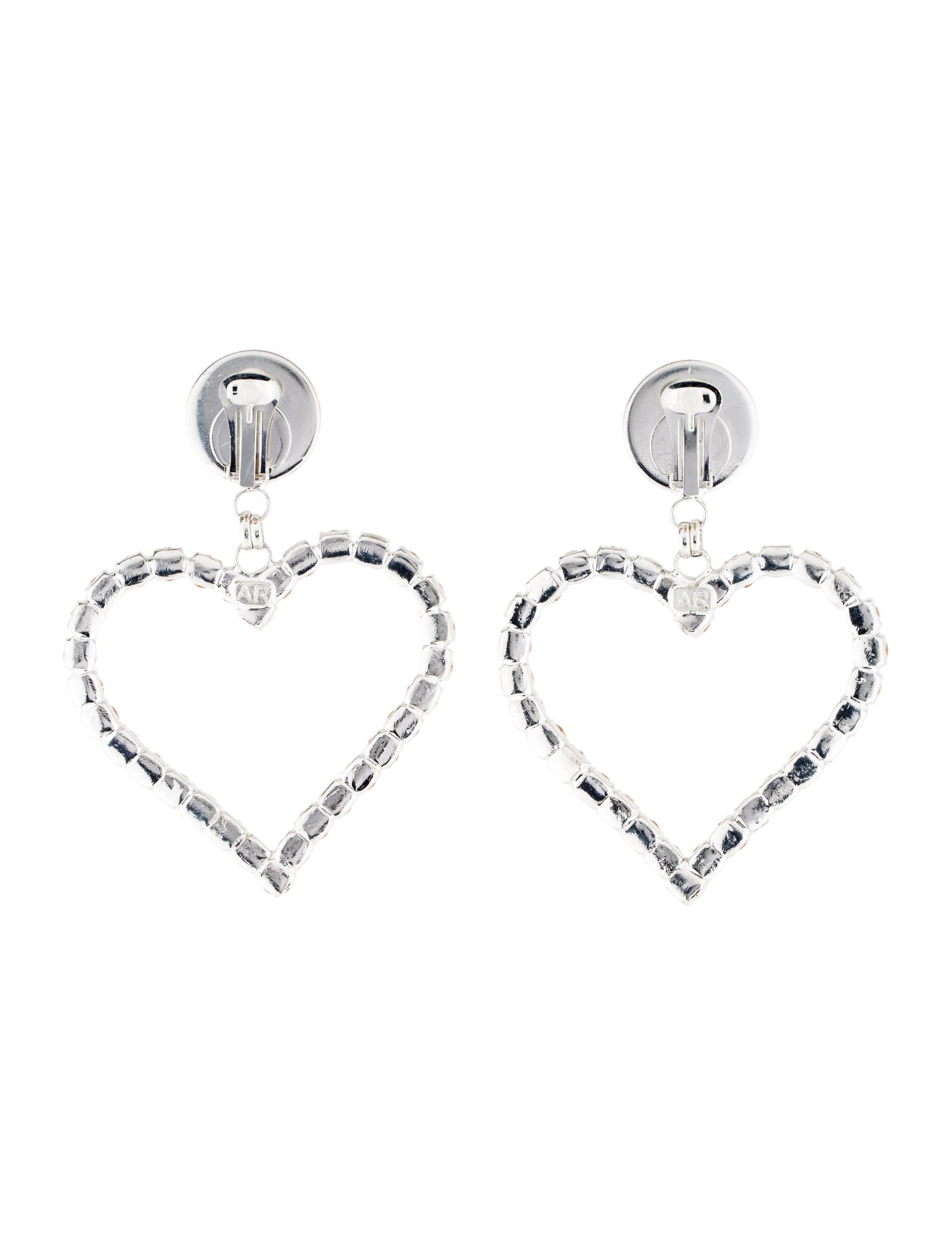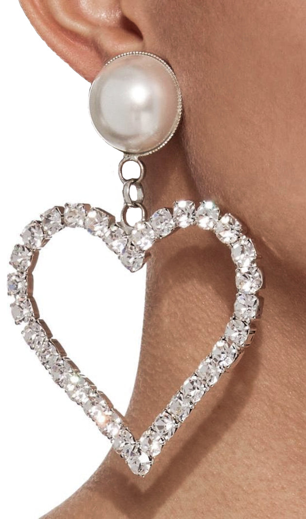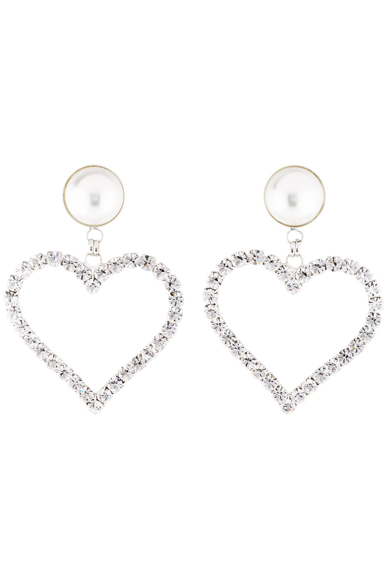 Alessandra Rich Silver Oversized Heart Shaped Rhinestone Pearl Earrings
