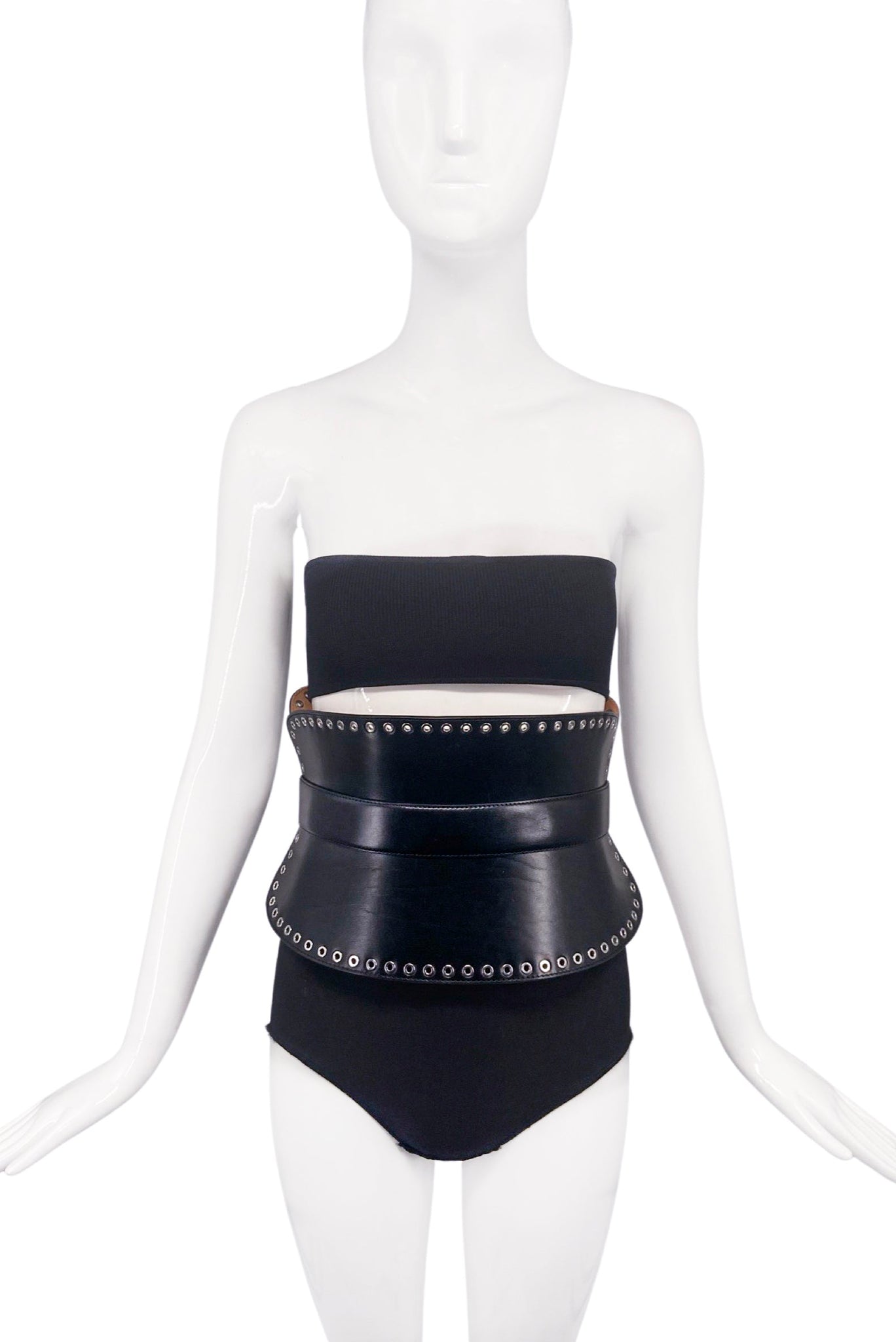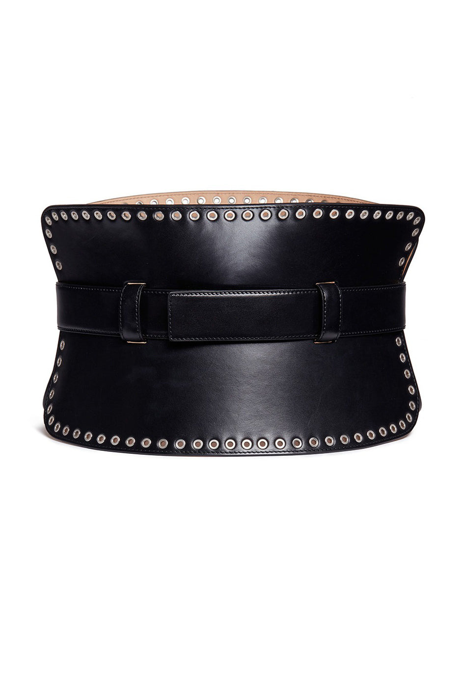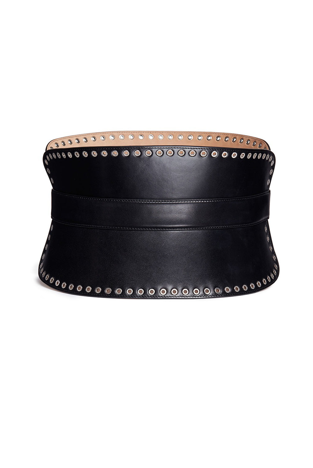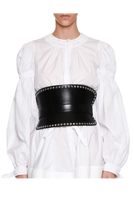 Alexander McQueen Black Leather Silver Metal Grommet Eyelid Corset Belt Pre Fall 2017