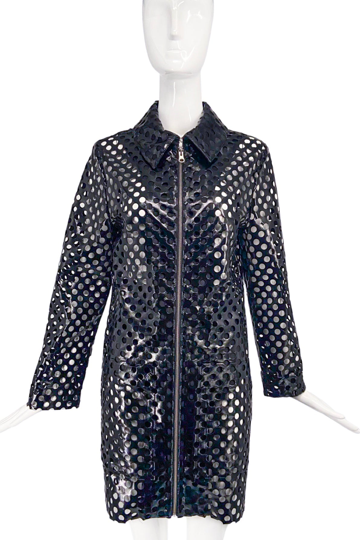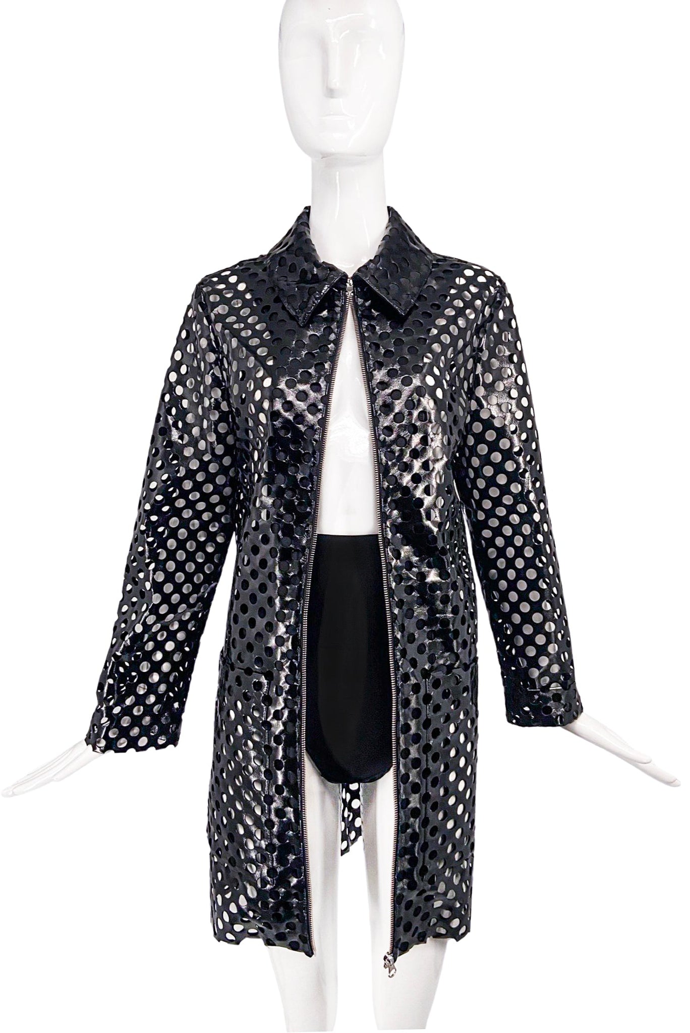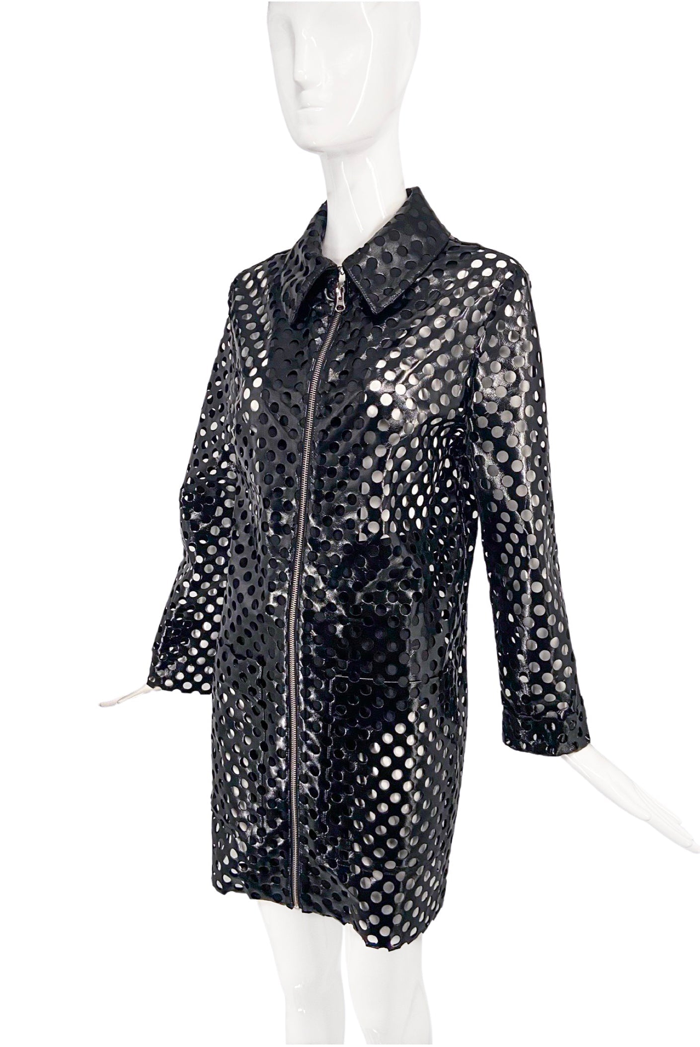 Alexander McQueen McQ Black Patent Leather Cut Out Perforated Coat Jacket