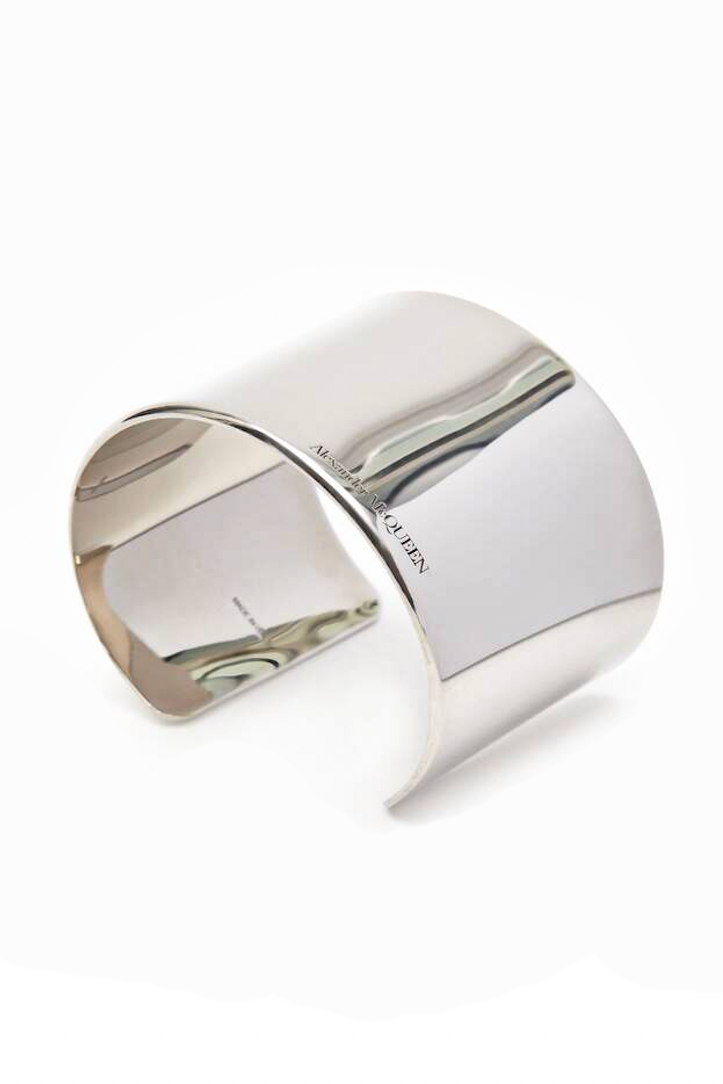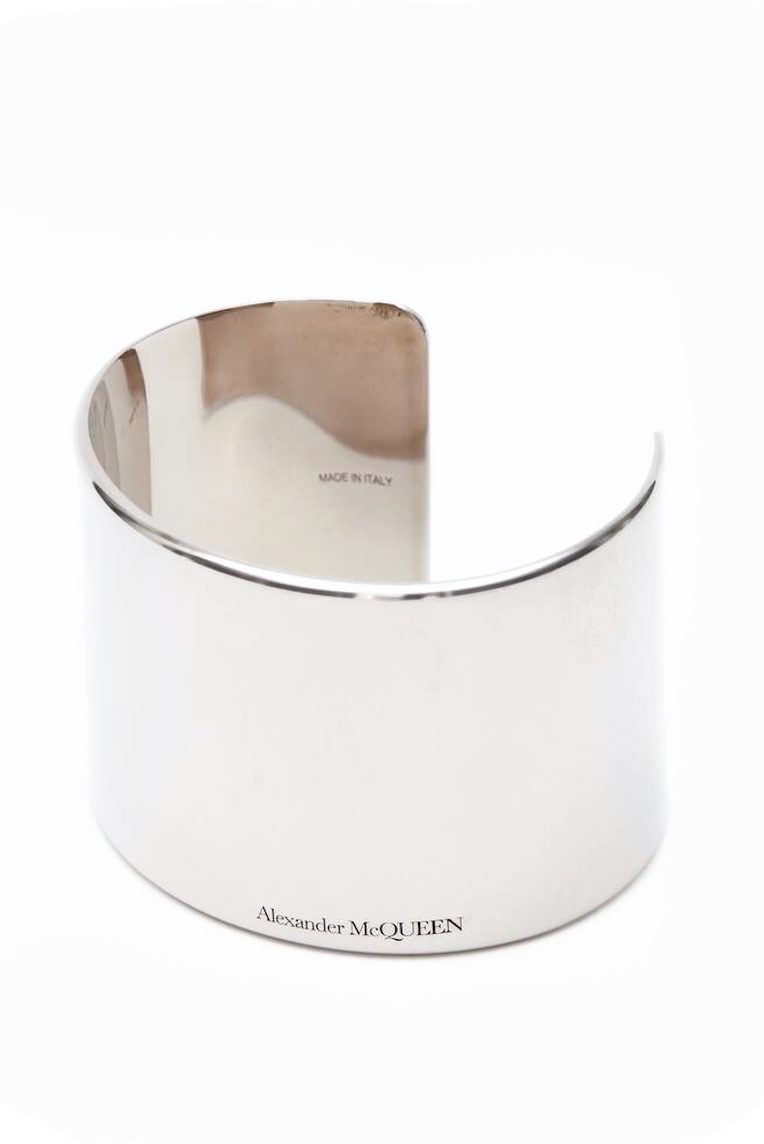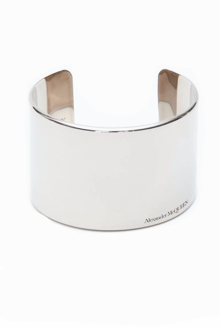 Alexander McQueen Silver Flat Wide Cuff Logo Bracelet